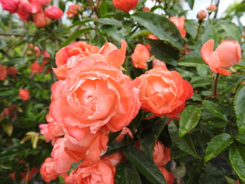 Niezwykle ciekawa róża kaskadowa w rzadko spotykanym pomarańczowo-czerwonym kolorze.