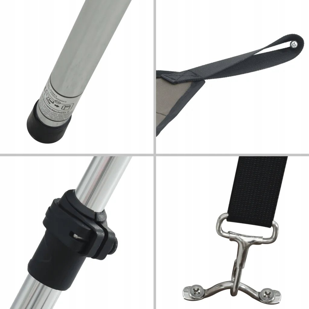 Za sprawą tego elementu rozbudowującego do zadaszenia, na T-kształtnej ramie możesz wygodnie i komfortowo spędzić dzień na łodzi, bez narażania się na ostre słońce. Trwały materiał: daszek wykonano w 100% z poliestru z powłoką PU, dzięki czemu będzie odporny na promieniowanie UV, wodę i pleśń przez lata użytkowania.Solidna konstrukcja: nadstawka ma aluminiową ramę w kształcie litery T, co zapewnia jej solidność i stabilność.Łatwość użytkowania: to przedłużenie do zadaszenia ma 2 wsporniki i paski z zaciskami, dzięki czemu możesz łatwo dostosować wysokość do swoich wymagań.Szeroki zakres zastosowań: to przedłużenie do zadaszenia na wsporniku w kształcie litery T jest kompatybilne z szeroką gamą daszków na wspornikach T-kształtnych i daszków bimini. Sprawdzi się ono na łodziach motorowych, łodziach rybackich i różnych innych jednostkach pływających, o ile ich zadaszenia mają odpowiedni rozmiar. Warto wiedzieć:Gdy zadaszenie nie jest używane, schowaj tkaninę w bagażniku. Złóż zadaszenie, gdy prędkość łodzi przekroczy 25 węzłów.