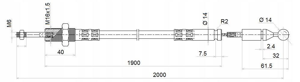 Długość linek w standardzie: 2m (takie wysyłamy jeśli klient nie zaznaczy inaczej). Możliwość zmiany długości linek na 1m ; 1,5m ; 2,5m ; 3m bez zmiany ceny zestawu. Gwinty od strony rozdzielacza: korpus linki M16x1.5, cięgno linki M6x1. Od strony joysticka kulka średnicy 14mm. Produkcja polska, wyprodukowano dla Agricola Hydraulic Components.