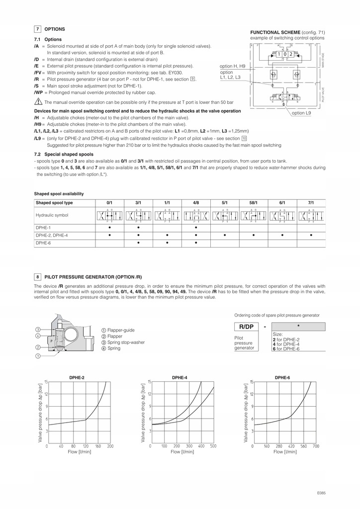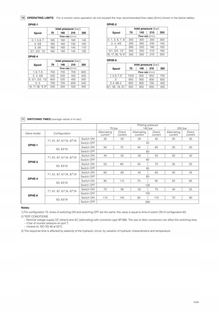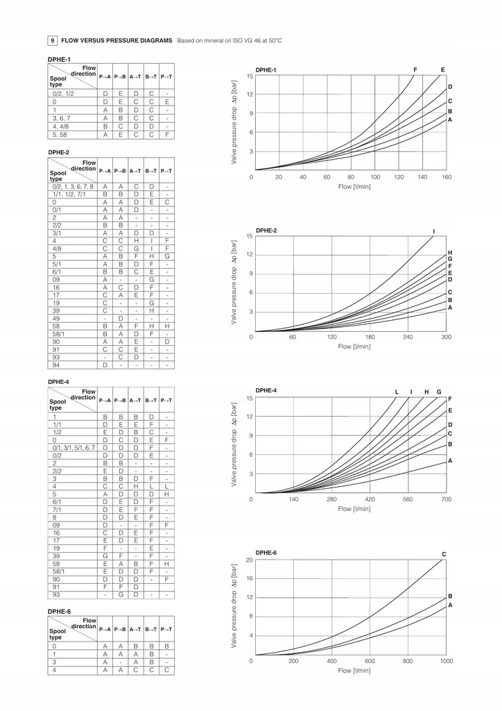 Przepływ w karcie katalogowej jest określony jako maksymalny i zmienia się w zależności od rodzaju suwaka (schematu hydraulicznego zaworu), w arkuszu danych na wykresach określone są dokładne wartości dla danego typu rozdzielacza.