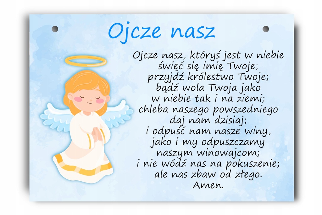 RÓŻOWA TABLICZKA Z ANIOŁKIEM I MODLITWĄ "OJCZE NASZ"