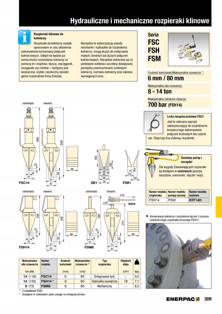 Profesjonalny rozpierak mechaniczny klinowy FSM8 do kołnierzy firmy Enerpac