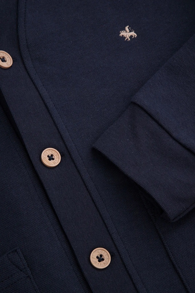 Odkryj elegancję i komfort w jednym z naszym granatowym swetrem rozpinanym dla chłopca. Ten klasyczny element garderoby, wykonany z dzianiny strukturalnej, zapewnia ciepło i wygodę podczas chłodniejszych dni. Sweter jest idealny na wyjątkowe okazje, dodając szyku każdej stylizacji.
