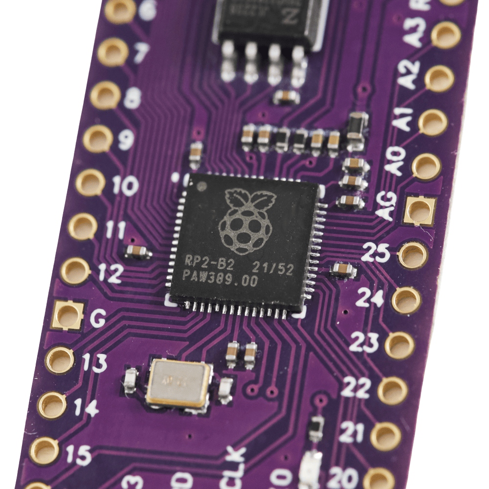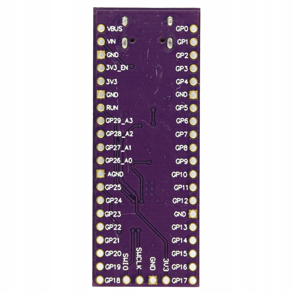Ten mikrokontroler zawiera dwurdzeniowy procesor Cortex-M0+ z prędkością 133 MHz, 16 MB pamięci Flash QSPI i 264 KB RAM. Dysponuje 40 pinami, umożliwiającymi pracę z różnymi interfejsami komunikacyjnymi, w tym ADC, UART, I2C, SPI, PWM i USB.
