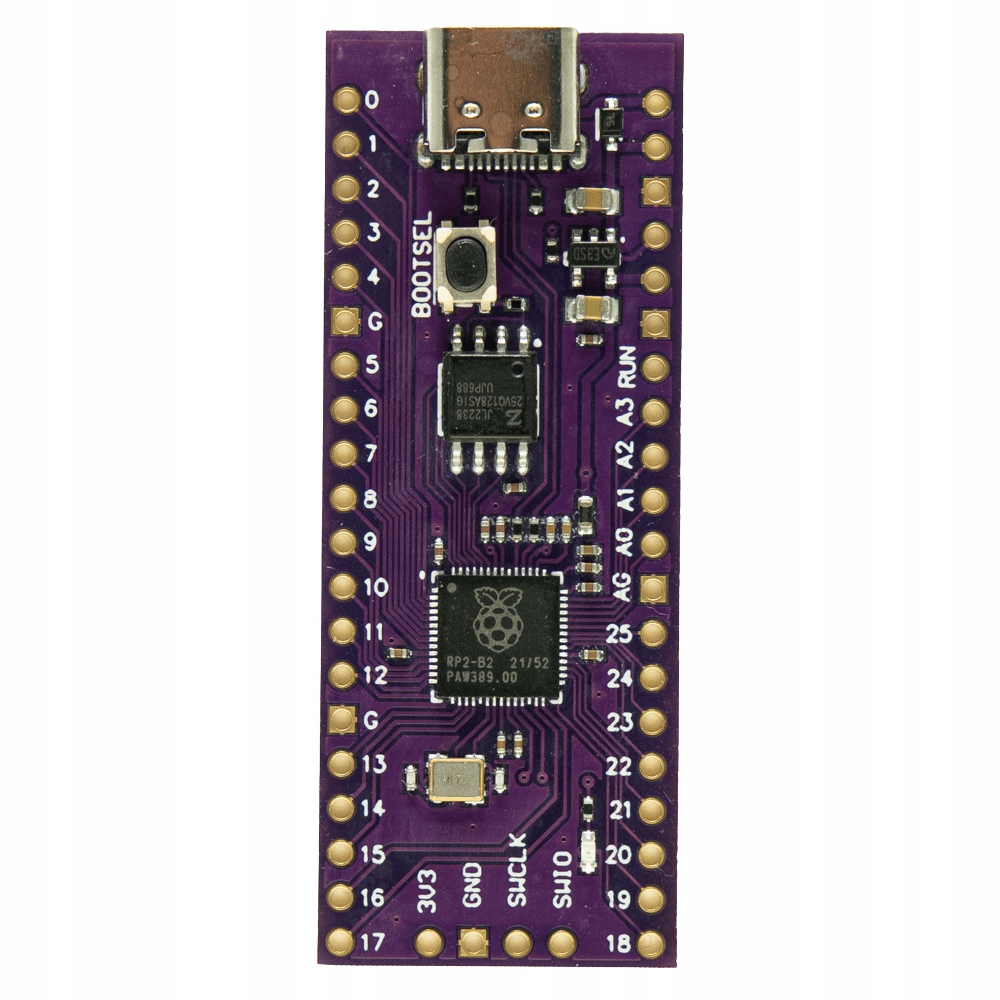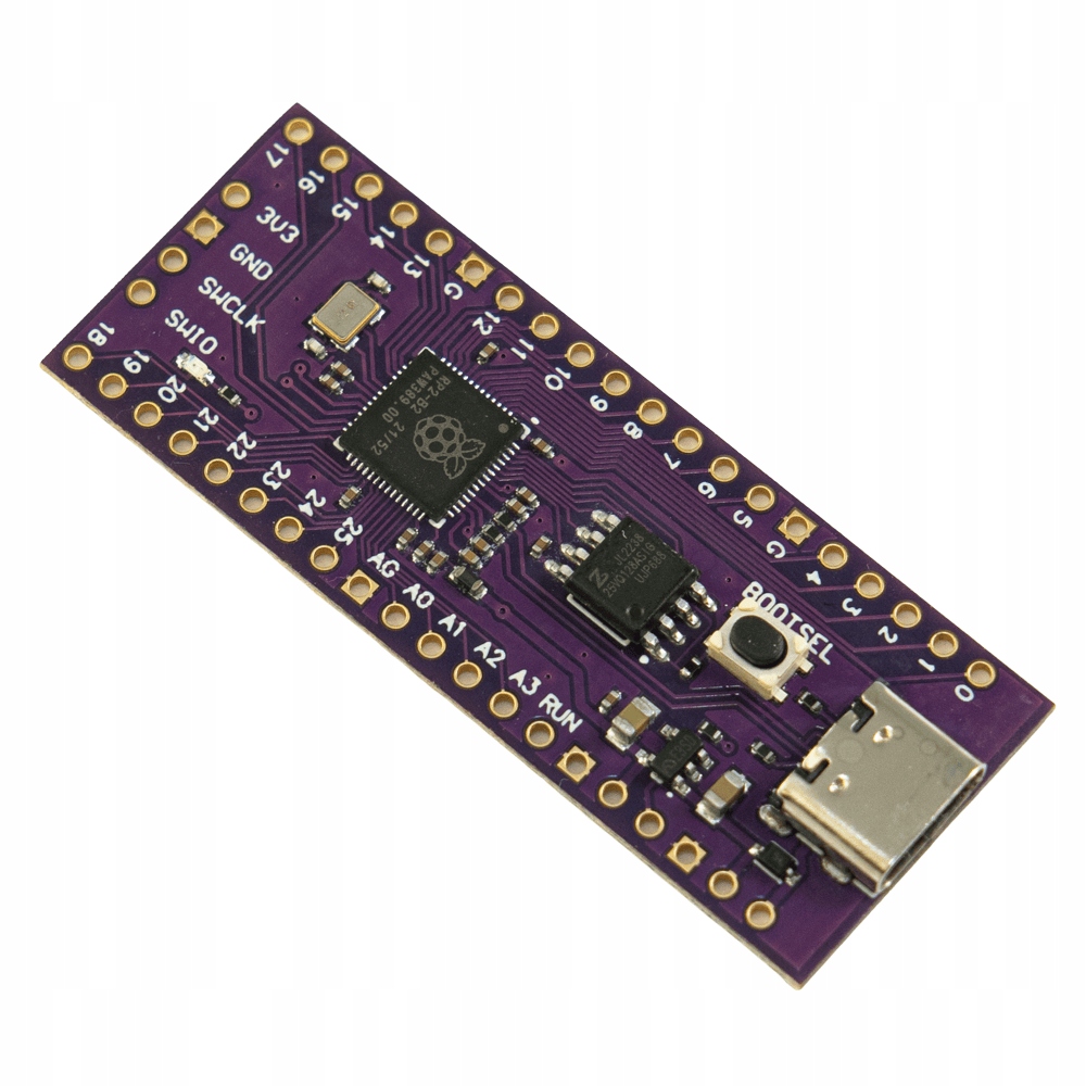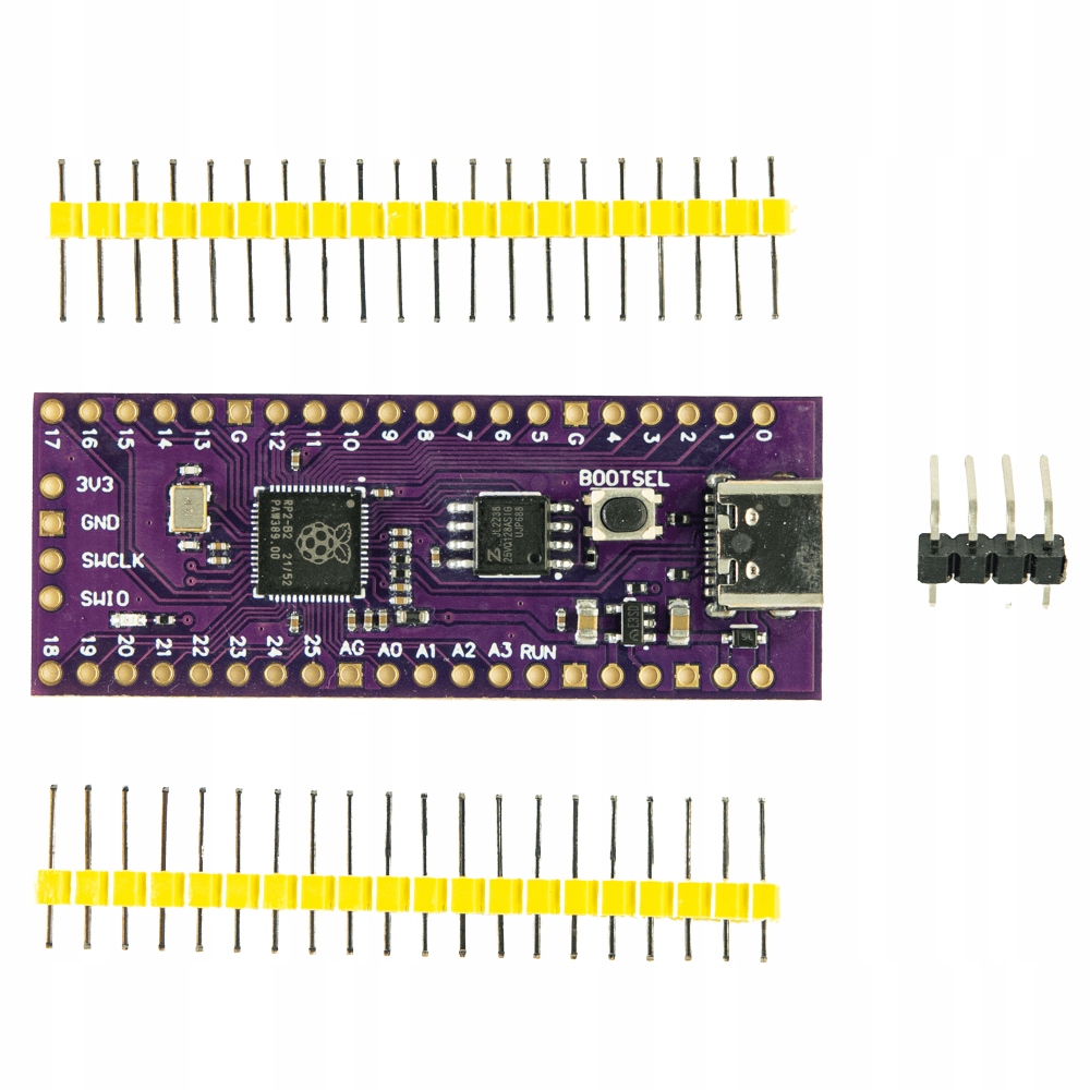 Kompaktowa płyta deweloperska z mikrokontrolerem RP2040 od Raspberry Pi Foundation, wyposażona w 16 Mbit pamięci Flash. RP2040 jest zaawansowanym mikrokontrolerem, który jest również częścią Raspberry Pi Pico.