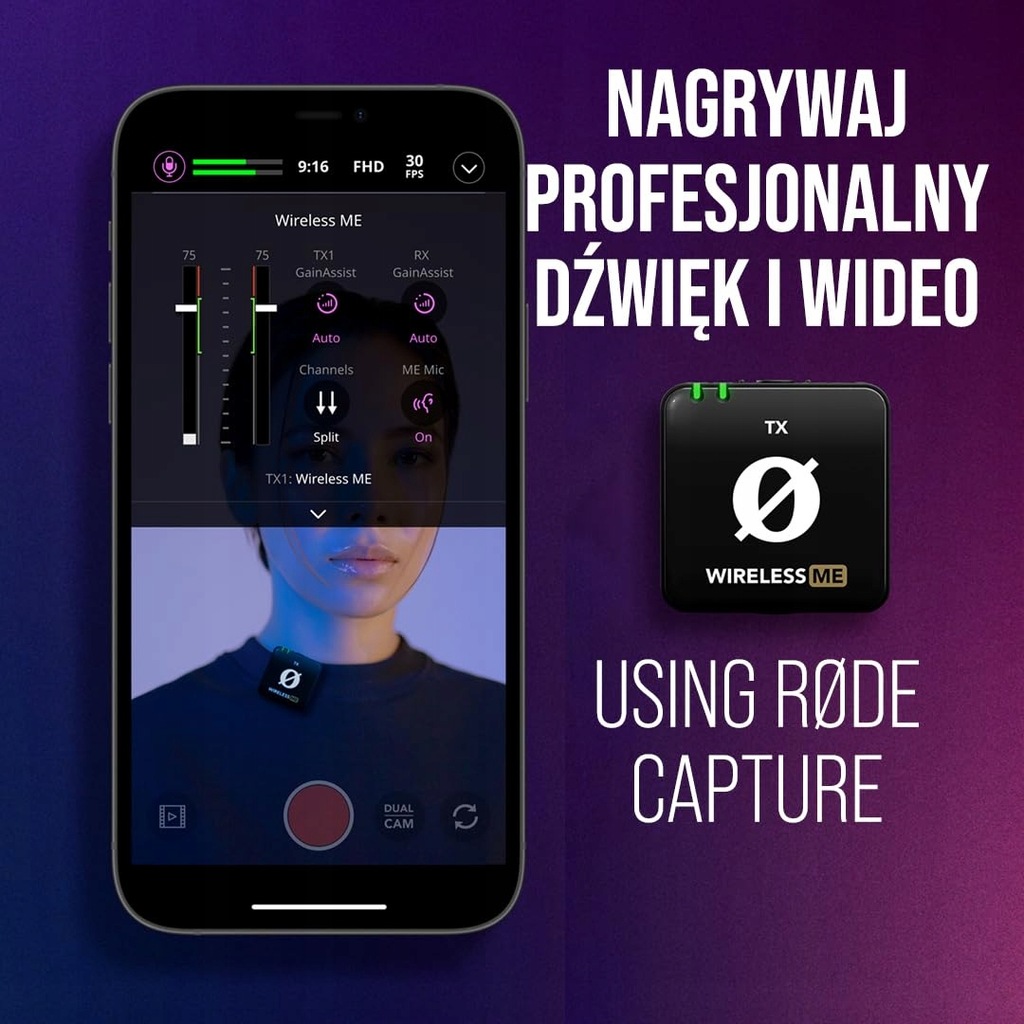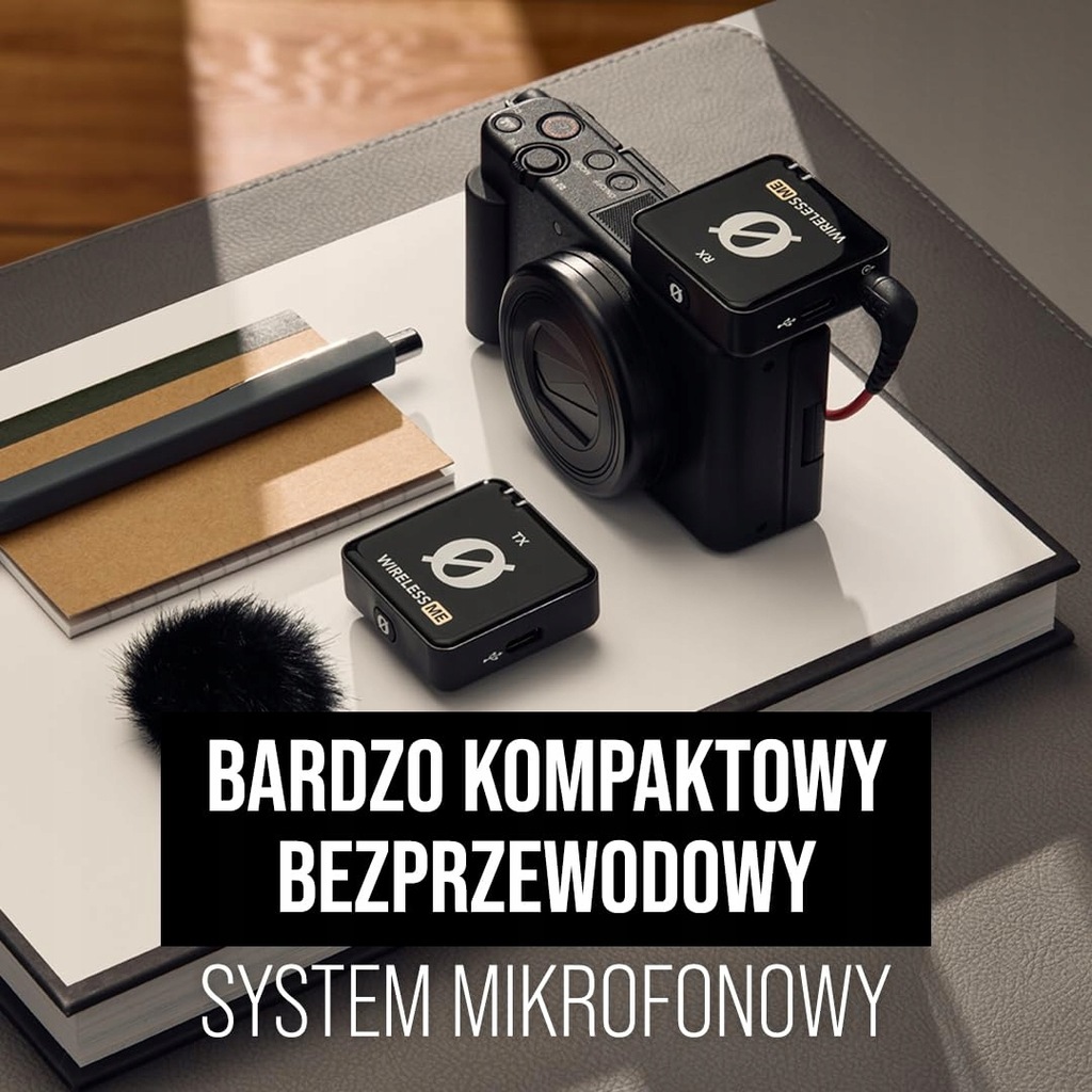 Ultra-kompaktowy i łatwy w obsłudze system mikrofonowy bezprzewodowy do produkcji filmowej, przeprowadzania wywiadów, TikToku, streamingu, podcastingu i rozmów wideo (Zoom, Teams, Skype itp.). W nadajniku znajduje się mikrofon do nagrywania podmiotu na odległość ponad 100 m, a w odbiorniku mikrofon do nagrywania wywiadów lub nagrań lektorskich zza kamery.