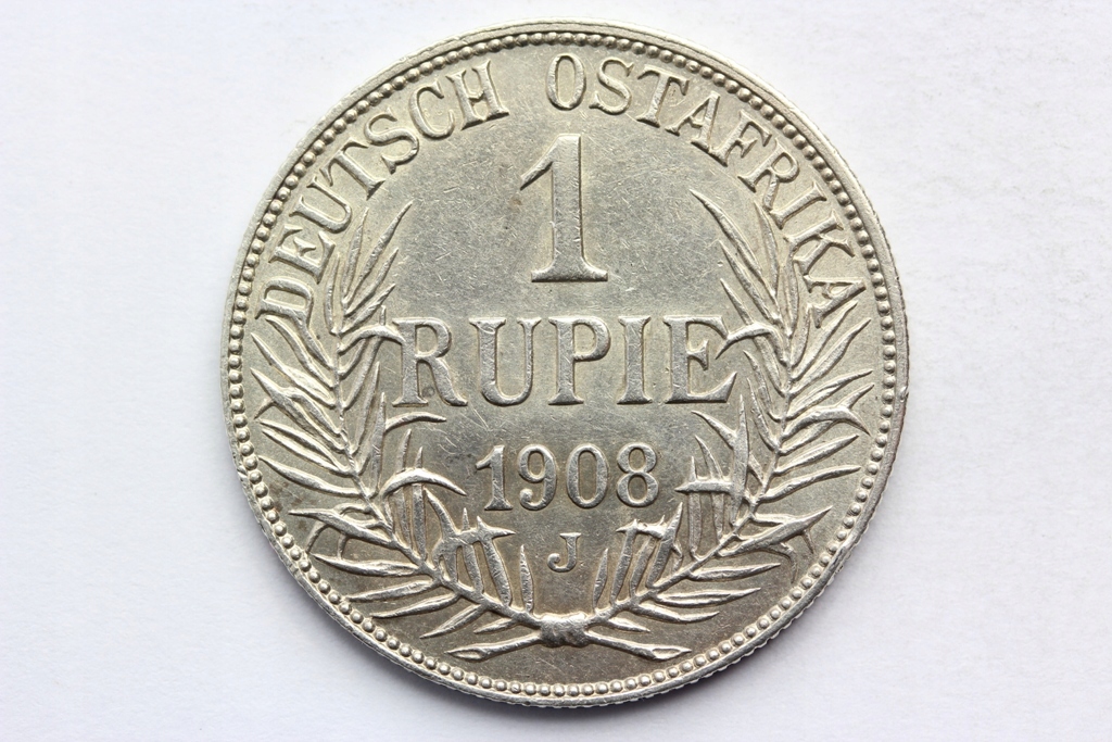 NA AUKCJI WYSTAWIONA JEST PRZEPIĘKNA ORYGINALNA SREBRNA MONETA KOLEKCJONERSKA - RUPIA - NIEMIECKIE KOLONIE AFRYKA WSCHODNIA 1908 - J - MENNICA HAMBURG - RZADKA - RARYTAS - SREBRO - ORYGINAŁ - POLECAM - NA INNYCH AUKCJACH WYSTAWIAM DUŻO STARYCH SREBRNYCH NIEMIECKICH MONET TALARÓW i MAREK - ZAPRASZAM DO OBEJRZENIA - KOMIS IN - 7/03/11/21