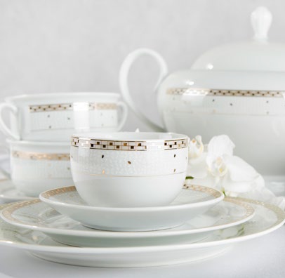 Ponadczasowy i elegancki wzór Ryż nadaje klasyczniej zastawie niebanalnego charakteru. Połączenie połyskującego złota z bielą to rozwiązanie, które nigdy nie zawodzi. Zastawa stołowa Ryż, nadaje wyjątkowy i elegancki stylu do każdego stołu, niezależnie od okazji. Złoty wzór sprawia, że naczynia z serii Ryż są wytworne i szykowne. Jednak, dzięki swojej delikatności i klasycznym kształtom idealnie sprawdzą się nie tylko w trakcie wyjątkowych wydarzeń ale również w trakcie codziennych posiłków i spotkań z rodziną lub przyjaciółmi.