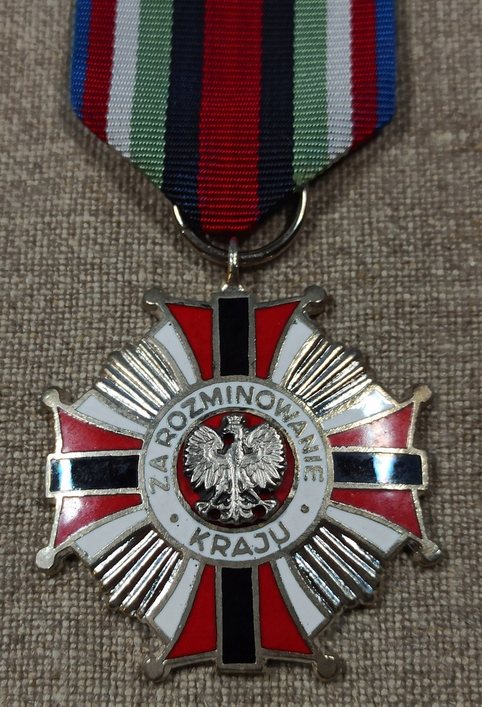 Przedmiotem aukcji jest bardzo rzadka odznaka honorowa "Za rozminowanie kraju" wraz z legitymacją. Jest to polskie odznaczenie niepaństwowe ustanowione w 1992 roku przez Krajową Radę Kombatantów Wojska Polskiego ZKRP i BWP w celu uhonorowania żołnierzy Wojska Polskiego biorących udział w operacji rozminowywania Polski po II wojnie światowej. Nadawanie odznaki rozpoczęto w 1998 roku. Do 2001 roku nadano ją 94 osobom. Od tego roku odznakę nadaje Stowarzyszenie Saperów Polskich. W 2010 roku rozszerzono możliwość nadawania odznaki także na żołnierzy patroli saperskich biorących udział w akcjach rozminowywania w kraju i na misjach zagranicznych. Legitymacja przedstawiona na aukcji posiada numer 134, co oznacza, że w tym czasie nadano tylko 134 tych odznaczeń.