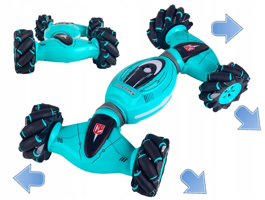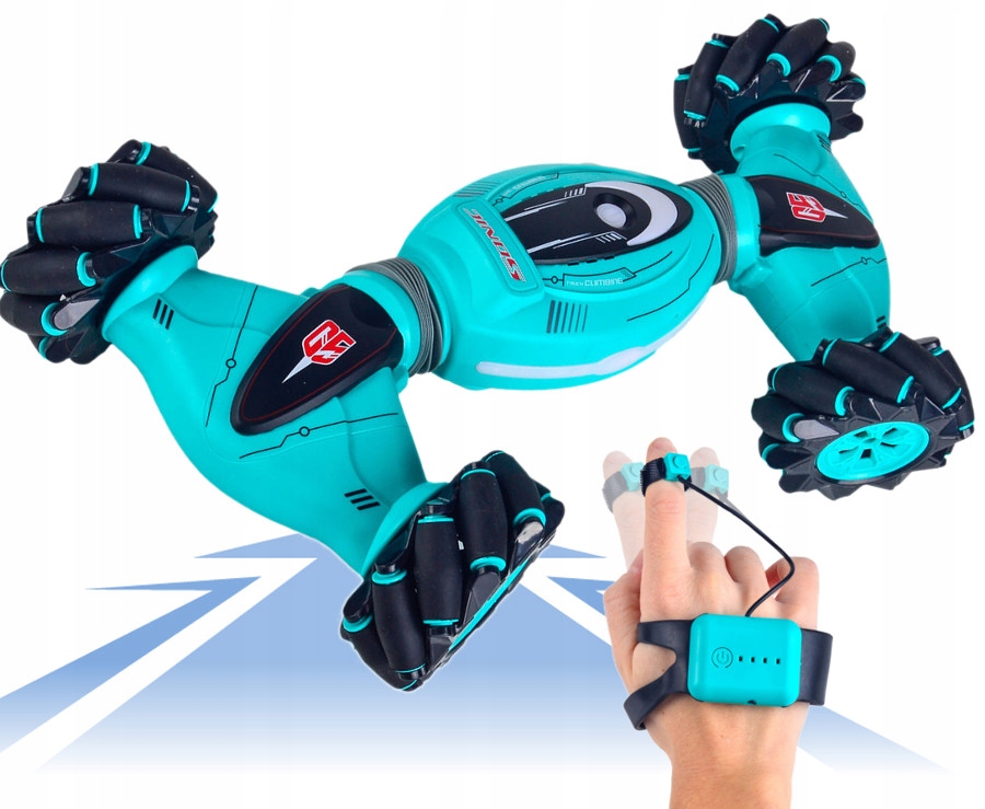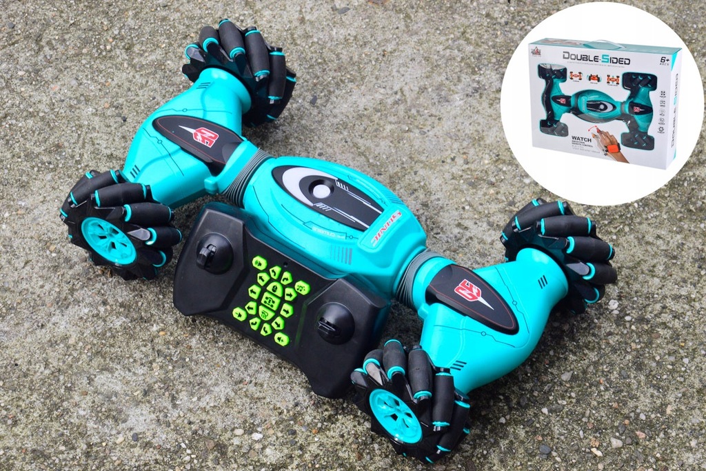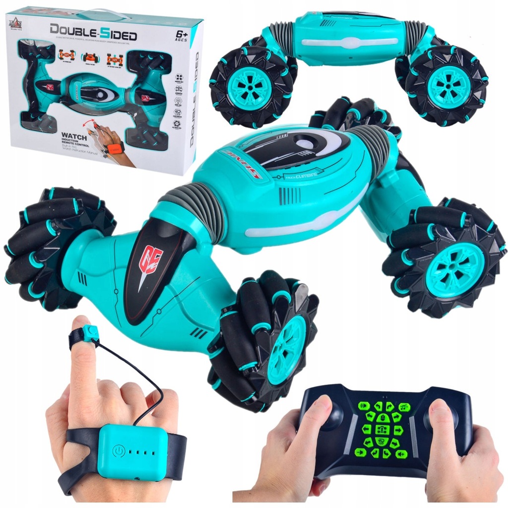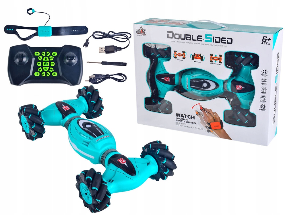 DOUBLE SIDED to najnowszy zdalnie sterowany ROLL CAR dla najbardziej wymagających ! Pojazd o niebanalnym wyglądzie, przyciąga uwagę swoimi futurystycznymi kształtami. Dzięki niezależnemu napędowi na cztery koła swobodnie poruszą się każdym kierunku. Obroty wokół własnej osi 360°, jazda bokiem, drift oraz prędkość maksymalna do 20km/h to jego główne zalety. DOUBLE SIDED można sterować na dwa sposoby. Klasycznie pilotem RC oraz grawitacyjnie wykonując odpowiednie gesty ręką z nałożona opaską sterującą.