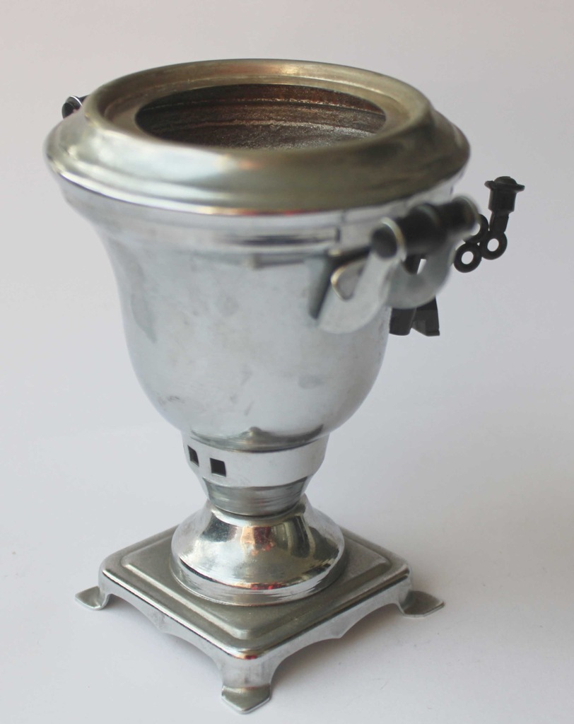 Zabawka metalowa samowar, obecnie po 40 latach zalegania na strychu, jak na foto, opakowanie zastępcze.