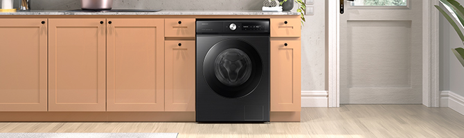 Pranie łatwe i efektywne dzięki zaawansowanemu wyświetlaczowi AI. Funkcja ta personalizuje proces prania poprzez zapamiętywanie Twoich przyzwyczajeń, takich jak najczęściej używane ustawienia, i na tej podstawie zaleca programy prania. Dla większej wygody podawane są także informacje o czasie, np. o stanie cyklu prania. [7] Aplikacja SmartThings oferuje porady dotyczące cykli prania i codziennego harmonogramu, podaje wskazówki dotyczące konserwacji i może powiadamiać za pośrednictwem podłączonych urządzeń o zakończeniu cyklu prania. Auto Cycle Link [8] komunikuje się również z suszarką w celu dobrania idealnego programu suszenia.