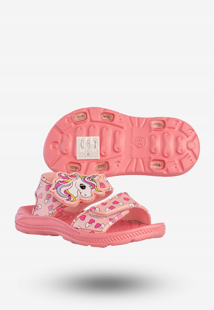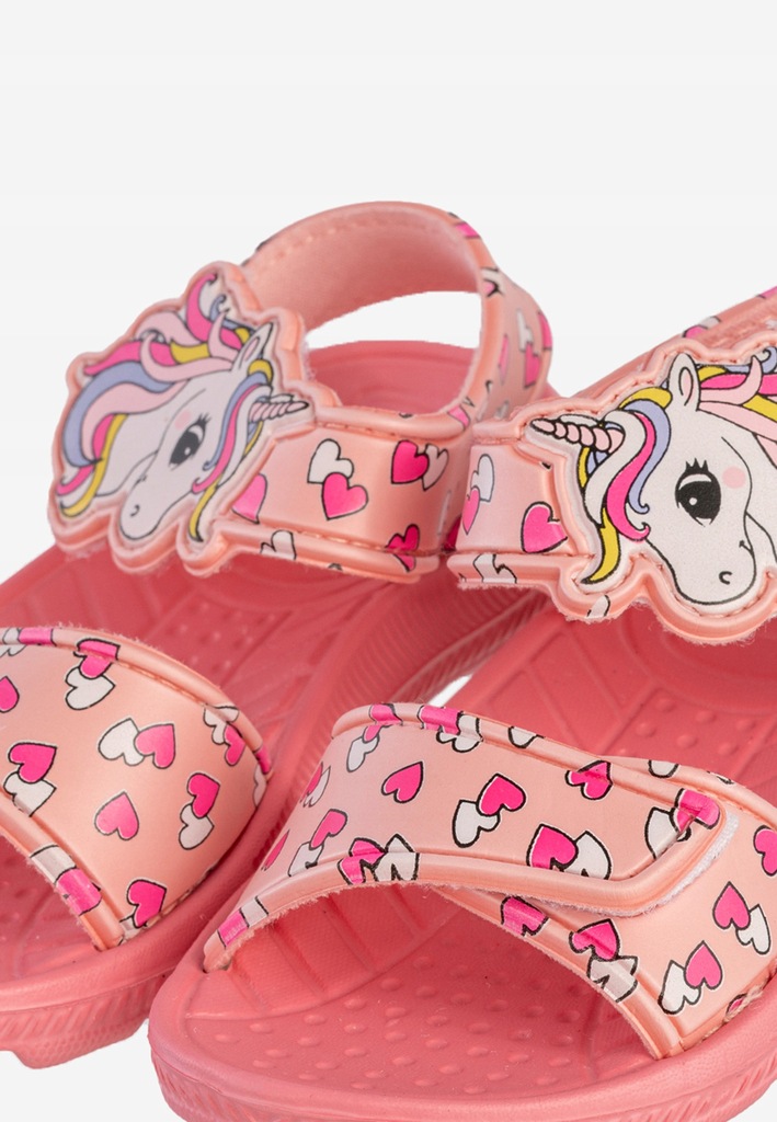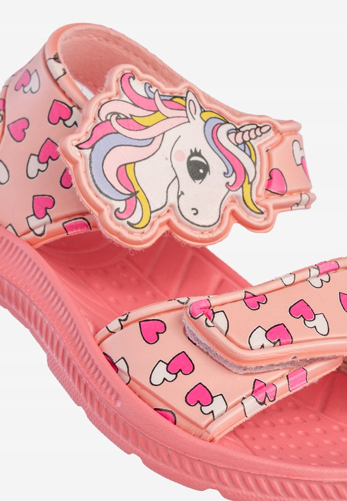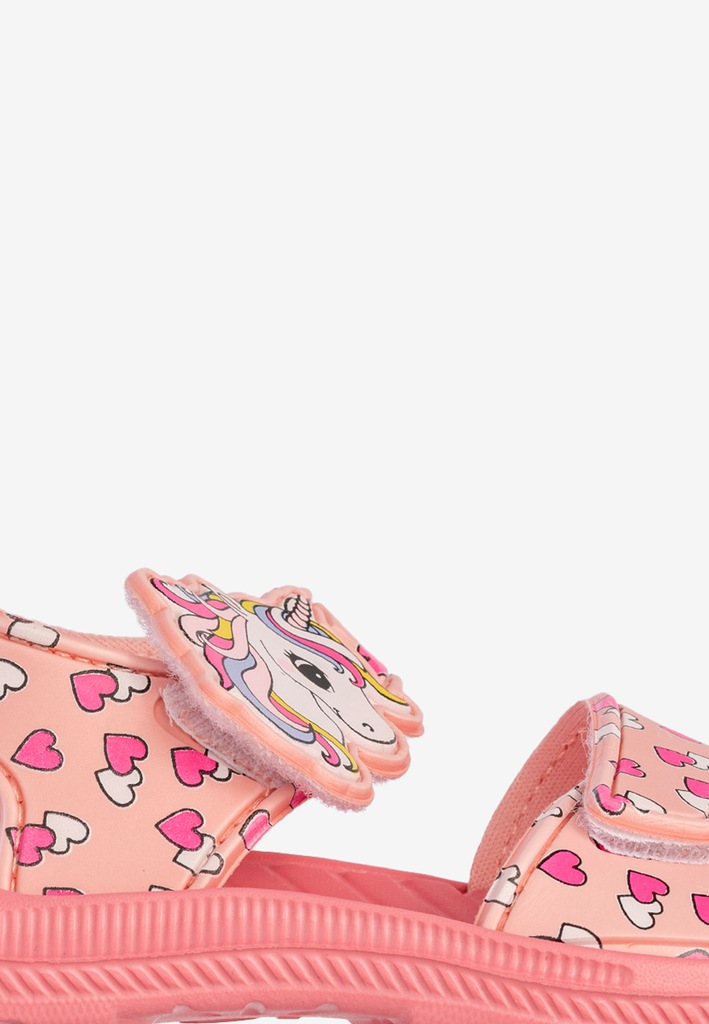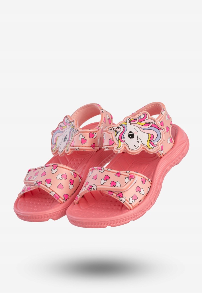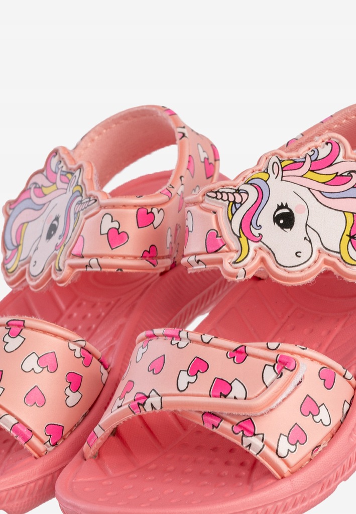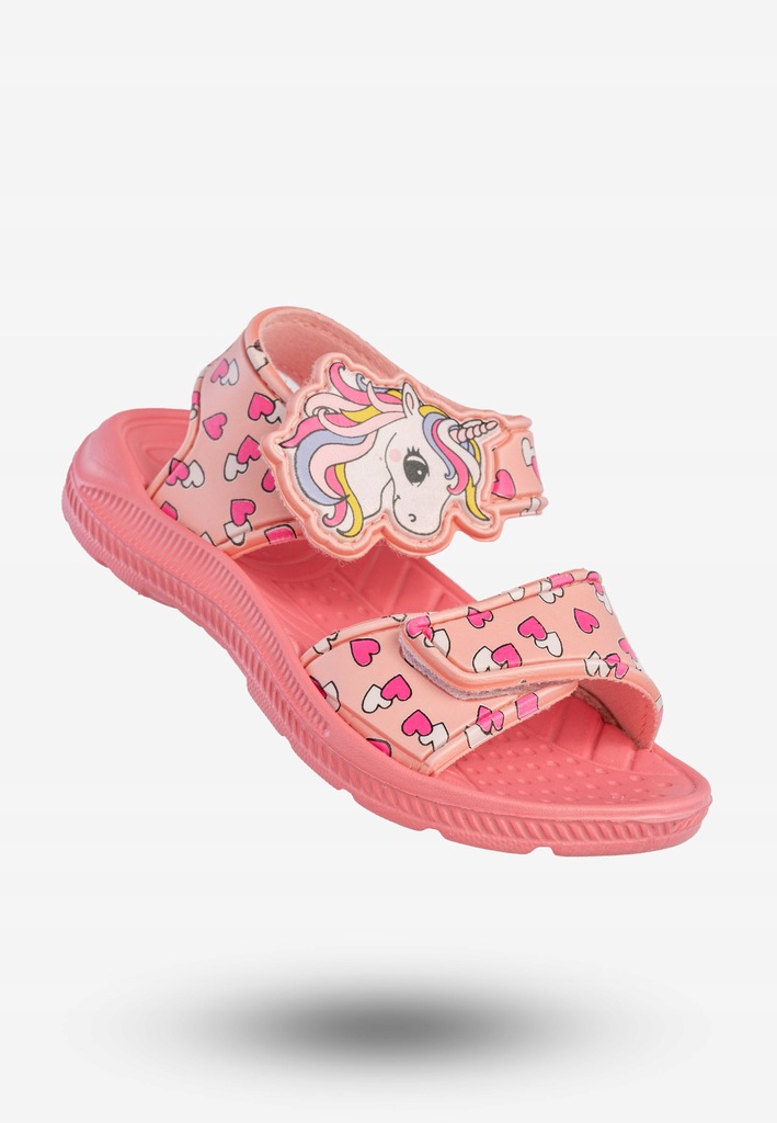 Różowe sandałki dziecięce Axim 4S25423R to prawdziwa gratka dla małych miłośniczek jednorożców i bajkowych stylizacji! Uroczy motyw z kolorowym rożkiem i serduszkami sprawia, że te klapki i sandały dziecięce będą ulubionym dodatkiem każdej dziewczynki. Lekkie, wygodne i praktyczne – stworzone z myślą o bezpiecznej zabawie każdego dnia.