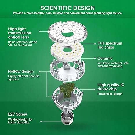 Opatentowana technologia COC: W przeciwieństwie do innych marek oświetlenia do roślin, które wykorzystują radiatory z tworzywa sztucznego lub aluminium, SANSI spawa chipy LED z ceramiką, wykorzystując właściwości materiału ceramicznego i unikalną, wydrążoną strukturę, aby zwiększyć wydajność rozpraszania ciepła, wydłużając żywotność żarówki do 25 000 godzin.