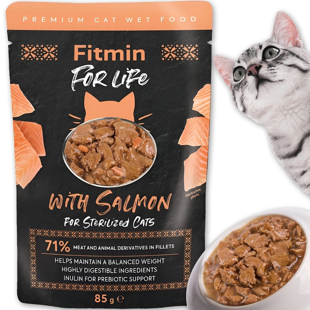 Fitmin For Life łosoś dla sterylizowanych 24 x 85g - w Zestawie 24 saszetki