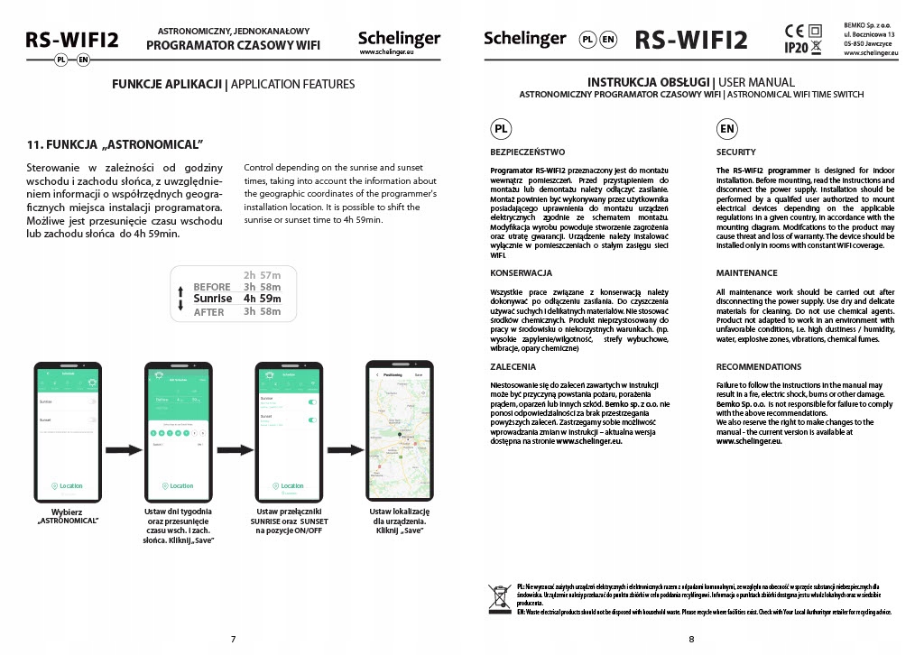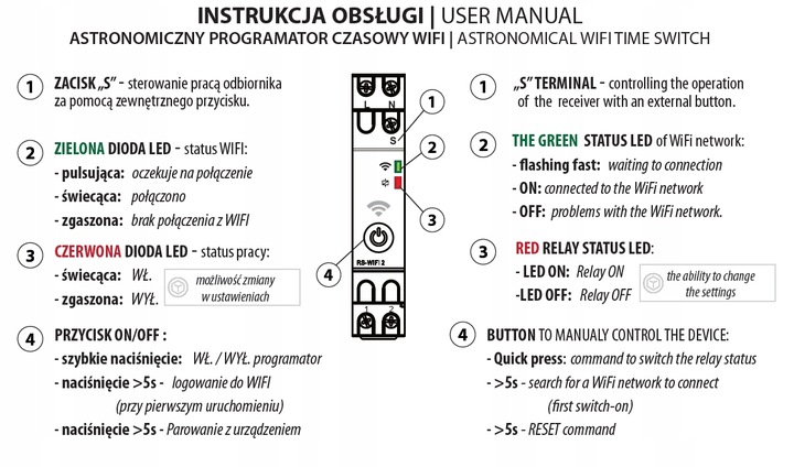 Jedynym warunkiem jest stałe podłączenie programatora do sieci WiFi z dostępem do Internetu. Programator posiada wiele przydatnych funkcji (wymienionych poniżej), dzięki którym ma zastosowanie przy sterowaniu: oświetleniem na elewacjach budynków, parkingach, klatkach schodowych i innych urządzeń elektronicznych. Programator posiada funkcję astronomiczną umożliwiającą sterowanie w zależności od wchodu i zachodu słońca – uwzględnia informację o aktualnym czasie współrzędnych geogracznych miejsca, w którym jest zamontowany.