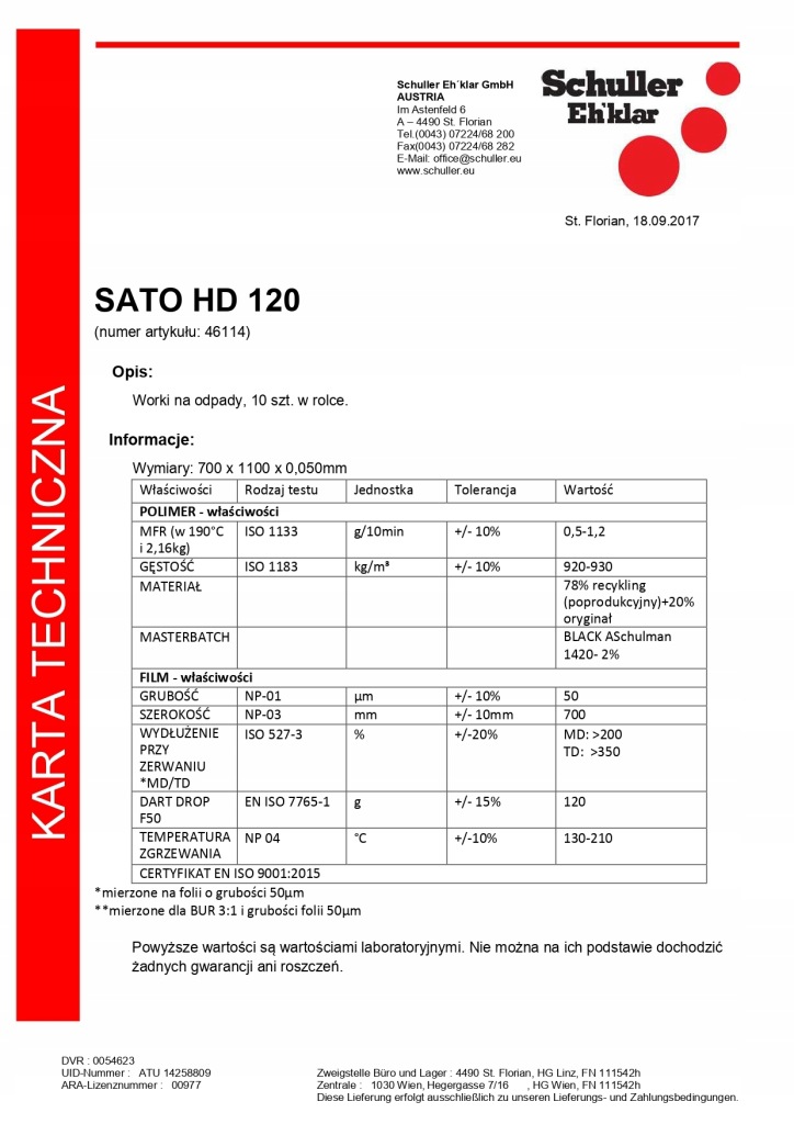 SCHULLER WORKI SATO HD 120 70/110 CM CZARNE 10 SZT