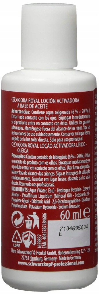 - Wywoływacz jest dopasowany do wszystkich kolorów Schwarzkopf Igora Royal. Nowa technologia wysokiej rozdzielczości z zawartością oleju w wywoływaczu zapewnia dodatkową pielęgnację i intensywność.
