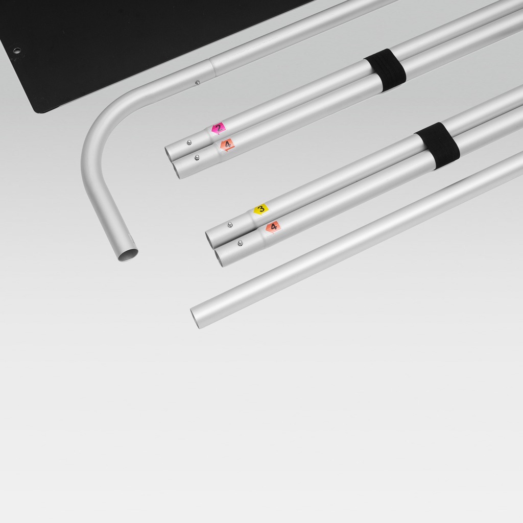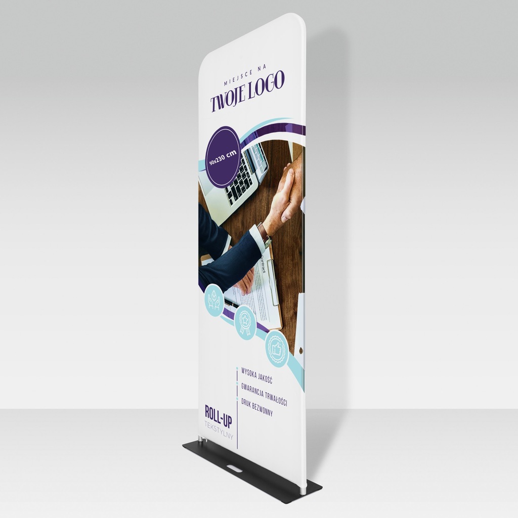 Ścianka tekstylna to system z lekkiego aluminium z elegancką stalową podstawą, która zapewnia dużą stabilizację. Dzięki zastosowaniu specjalnego, rozciągliwego materiału, grafika doskonale układa się na systemie. Wydruk jest zapinany od dołu na zamek błyskawiczny.