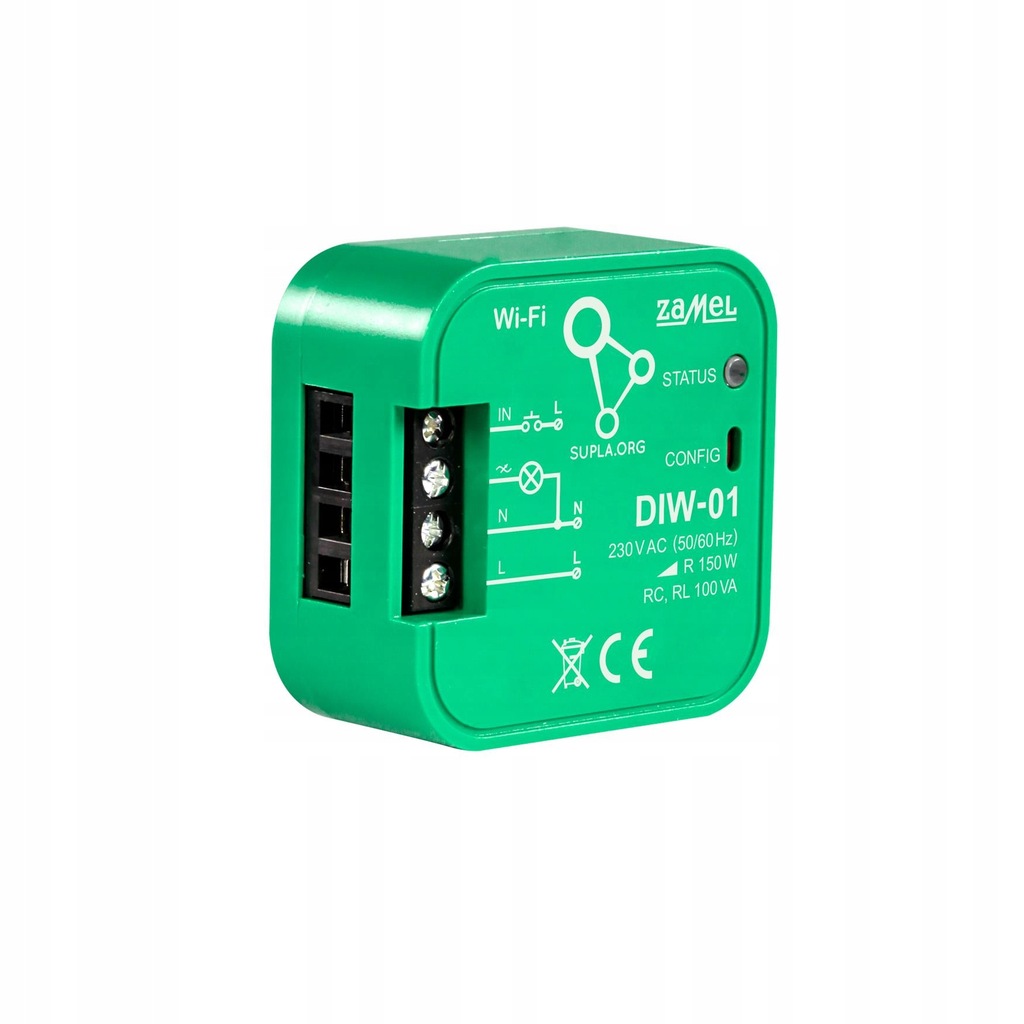 Ściemniacz DIW-01 to regulator natężenia oświetlenia dla żarowych i halogenowych źródeł światła. Współpracuje on również ze źródłami światła zasilanymi przez transformator elektroniczny, wybranymi ściemnialnymi źródłami LED i ściemnialnymi świetlówkami CFL. Sterowanie ściemniaczem może być prowadzone bezprzewodowo z poziomu aplikacji Supla oraz przewodowo z poziomu łącznika monostabilnego lub bistabilnego (tylko włącz, wyłącz).