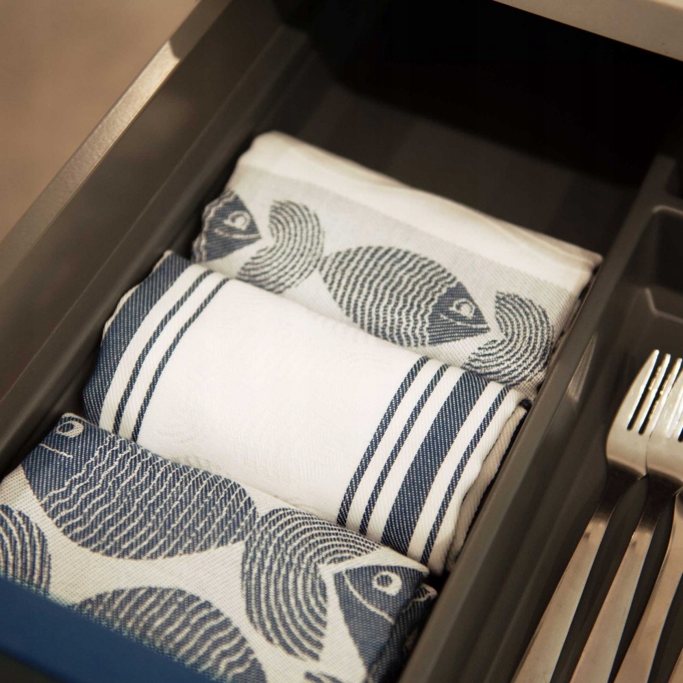 Ryby ławica to tkana żakardowo, szybkoschnąca ściereczka z uroczym motywem ryb. Połączenie białego i granatowego koloru sprawia, że model bardzo efektownie prezentuje się w każdej aranżacji. Dzięki technologii Ultrasoft oraz bawełnie egipskiej produkt jest miękki i miły w dotyku, oraz znakomicie chłonie wodę. Ta nowoczesna ściereczka sprawi, że kuchenne porządki staną się dużo bardziej komfortowe.