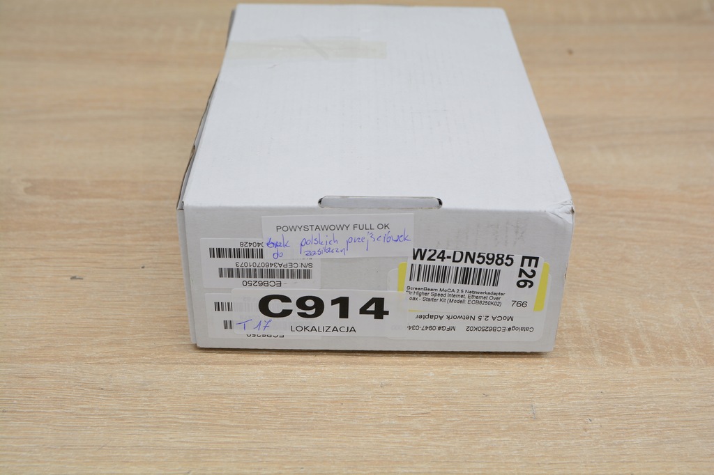 Powystawowy zestaw ScreenBeam Adapter sieciowy MoCA 2.5 do szybszego Internetu, Ethernet Over Coax - zestaw startowy (model: ECB6250K02)