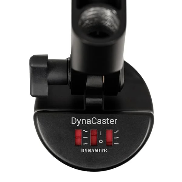 Wbudowany uchwyt do statywu mikrofonowego DynaCaster zapewnia szeroki zakres obrotu i czystą estetykę. Po przetestowaniu zakresu ruchu na wszystkich typach wysięgników mikrofonowych, nie ma wątpliwości, czy DynaCaster będzie działać z „tym wysięgnikiem biurkowym”.