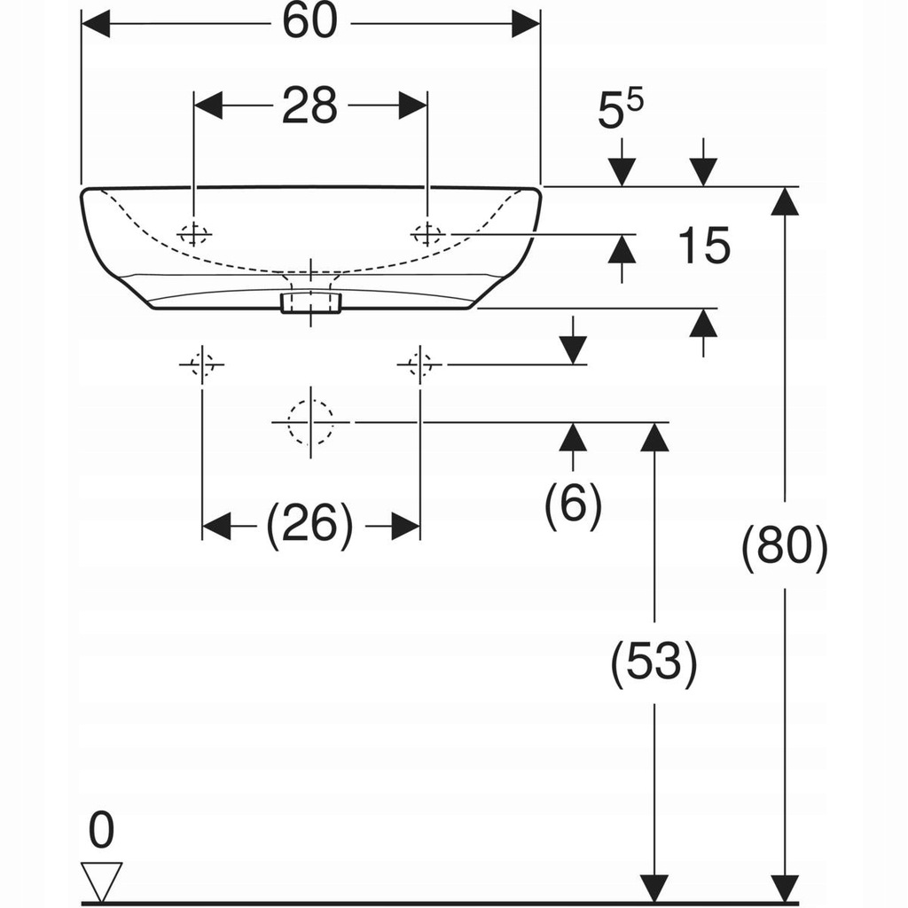 Umywalka Selnova Comfort B60 cm, H15 cm, T55 cm, bez przelewu, bez otworu na baterię, dla niepełnosprawnych o numerze katalogowym 502.771.00.7 w kategorii Umywalki ceramiczne, Ceramika. Produkt wyprodukowany przez markę GEBERIT, seria SELNOVA.