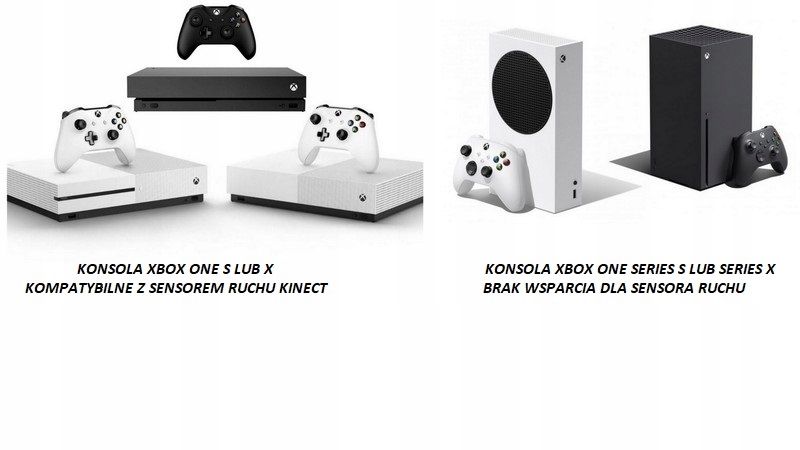 UWAGA : Konsole Xbox One Series nie są kompatybilne z sensorami ruchu, w konsolach tej serii została usunięta możliwość podłączenia sensora Kinect.