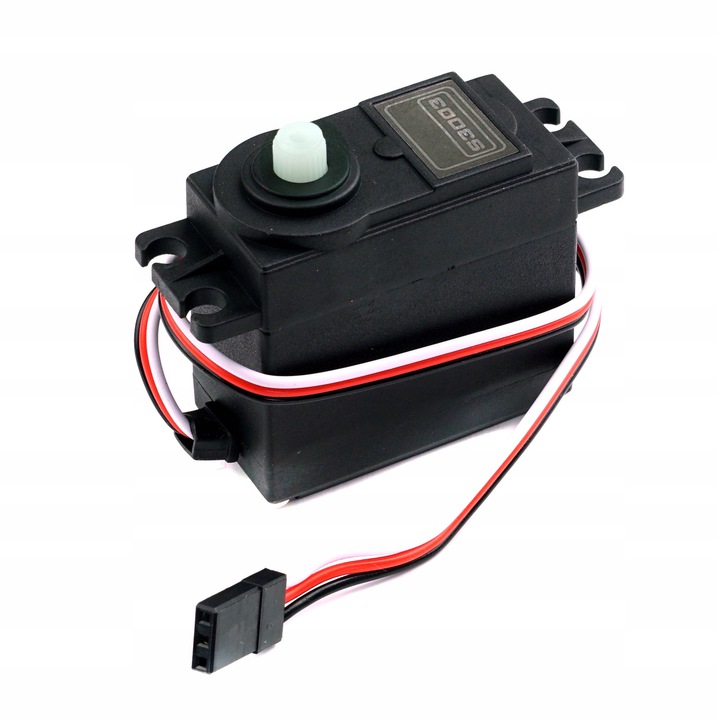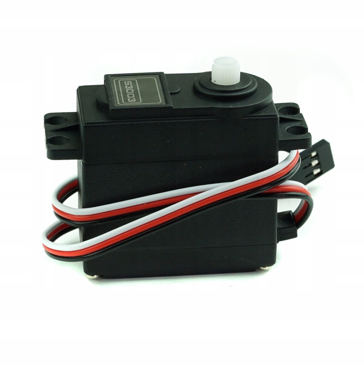 Serwo S3003 jest standardowym serwem o uciągu około 3 kilo. Jest łożyskowane, nada się doskonale do modelów w skali 1:10 .