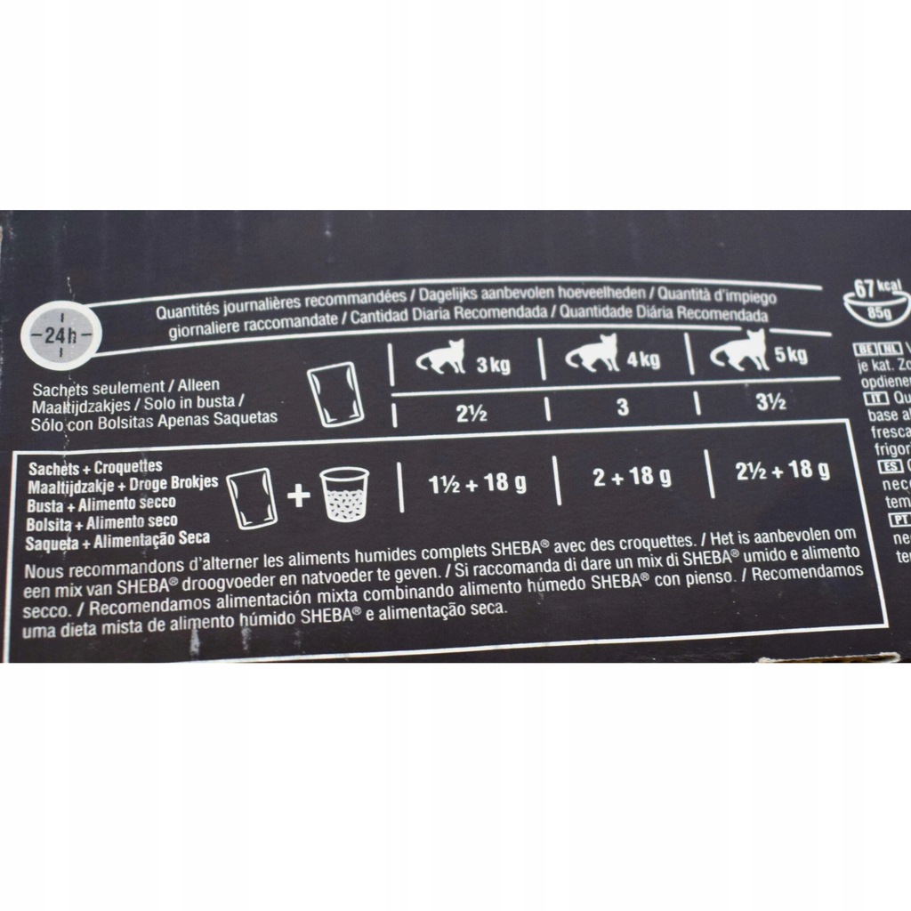 Kompletna mokra karma dla dorosłych kotów – 4 rodzaje mini filetów w sosie (Au kurczak / kaczka / drób / kaczka i indyk) Bujna mieszanka delikatnych przekąsek z wykwintnym sosem. Wyjątkowy przepis z wysokiej jakości i naturalnymi składnikami dla jeszcze większej współpracy z małym tygrysem domowym, bez sztucznych barwników i konserwantów. Każdy przepis Mini filet ets in Sheba Sauce Jest przygotowywany z wysokiej jakości składników, delikatnych przekąsek z sosem do zgniatania, a dzięki małym porcjom zawsze serwowane są świeże. Karma dla kotów, opracowana we współpracy z naszymi dietetykami i weterynarzami z centrum badawczego Waltham - wiodące na świecie referencje dotyczące odżywiania i dobrego samopoczucia zwierząt domowych.