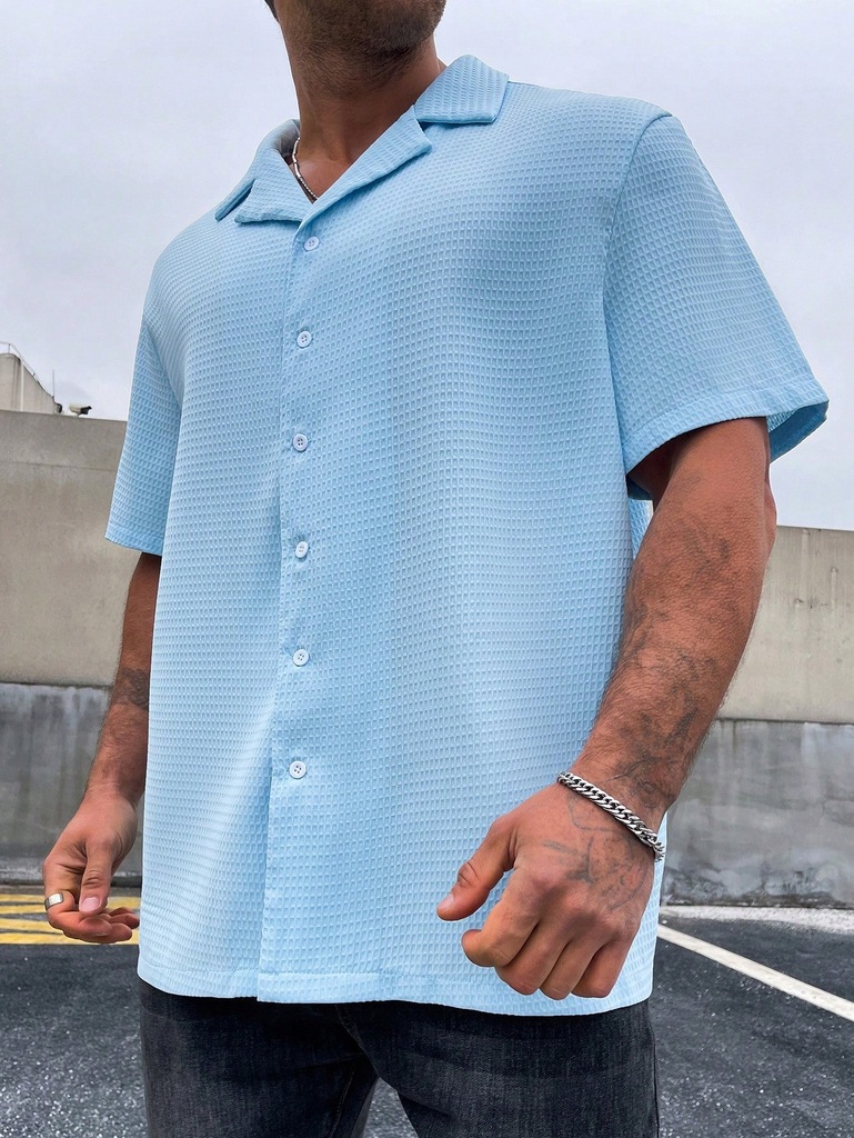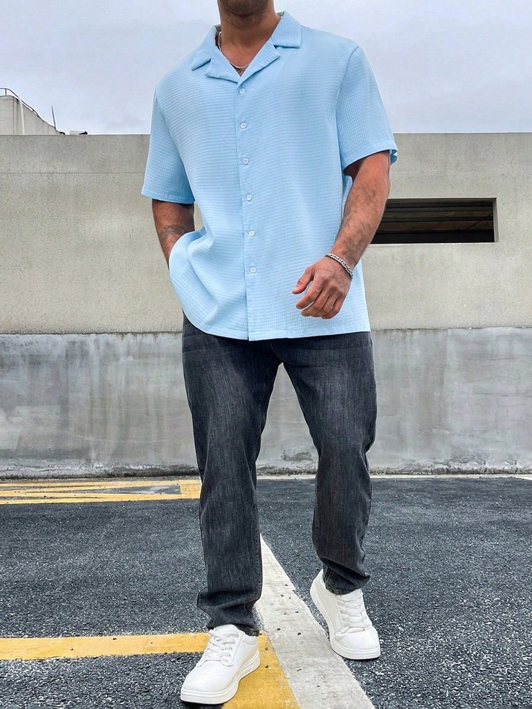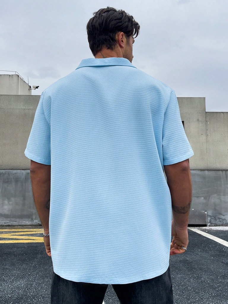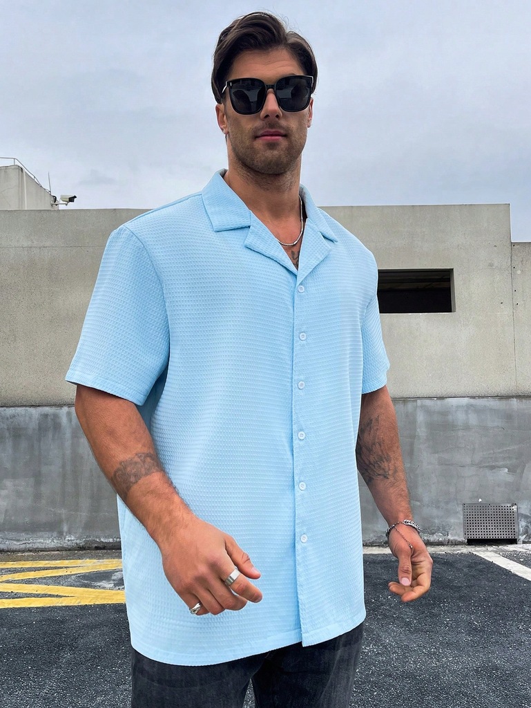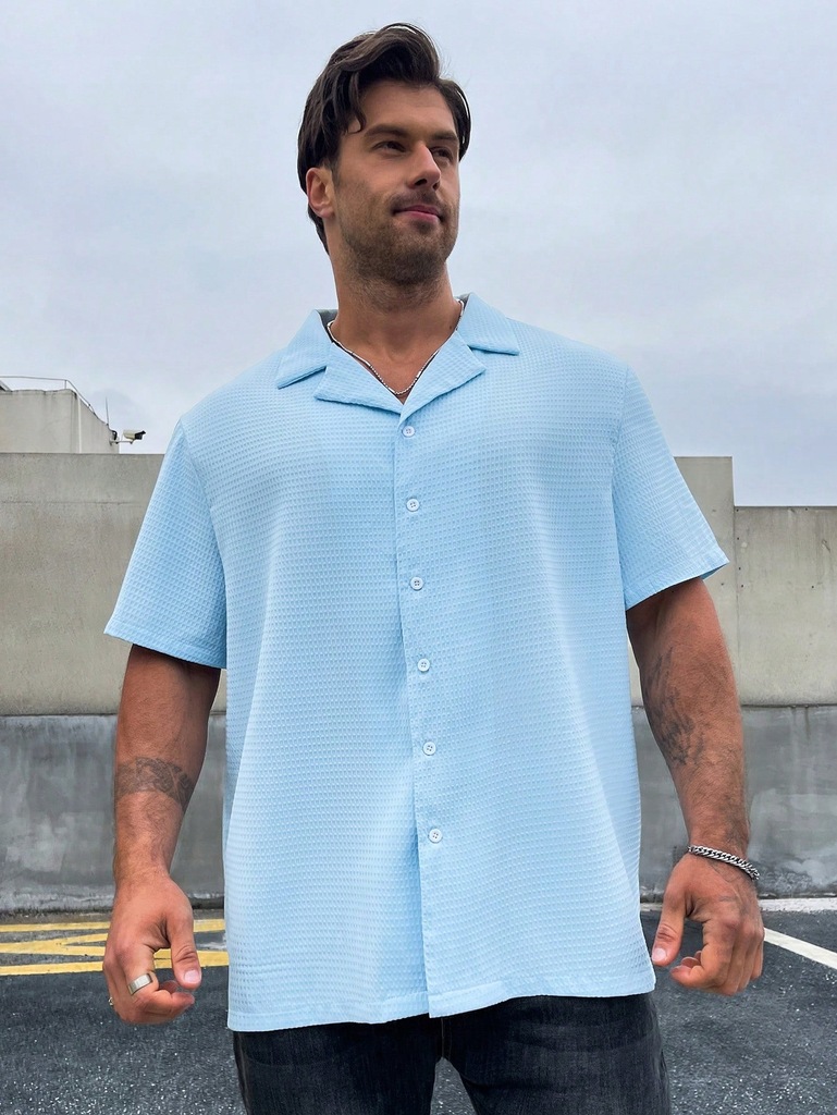 Shein Błękitna koszula męska z krótkim rękawem 3XL