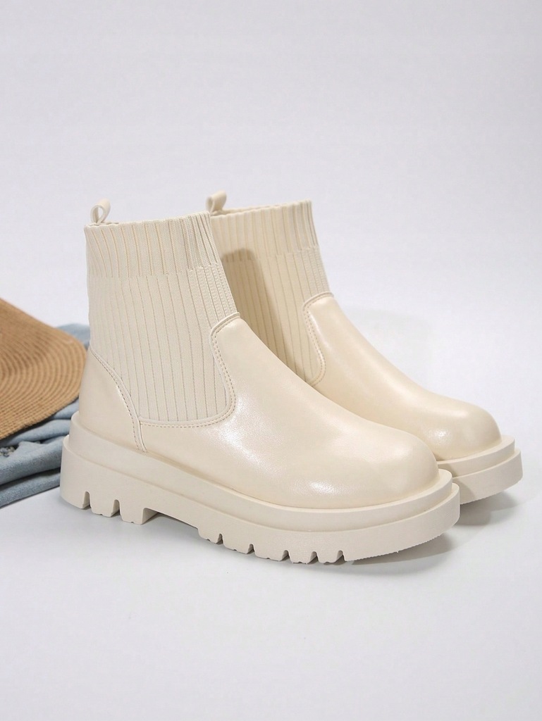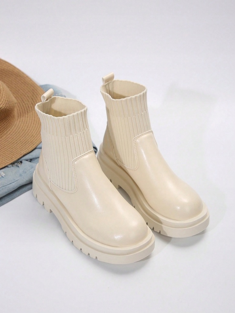 SHEIN BOTKI DAMSKIE BEŻOWE ZA KOSTKĘ JEDNOLITE WSUWANE 38