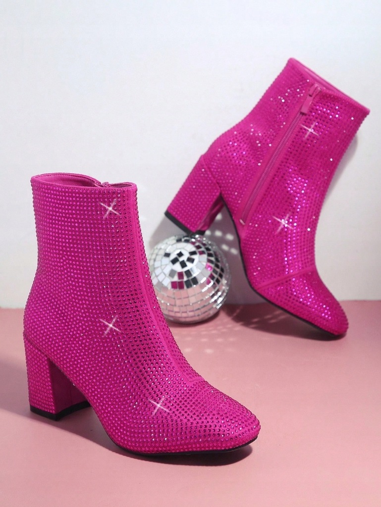 SHEIN BOTKI DAMSKIE NA OBCASIE RÓŻOWE Z KRYSZTAŁKAMI 40