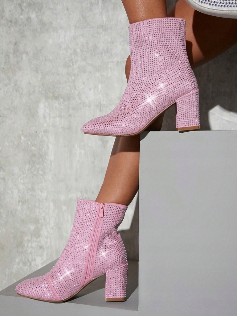 SHEIN BOTKI DAMSKIE RÓŻOWE KRYSZTAŁKI NA OBCASIE SZPIC ROZ 37
