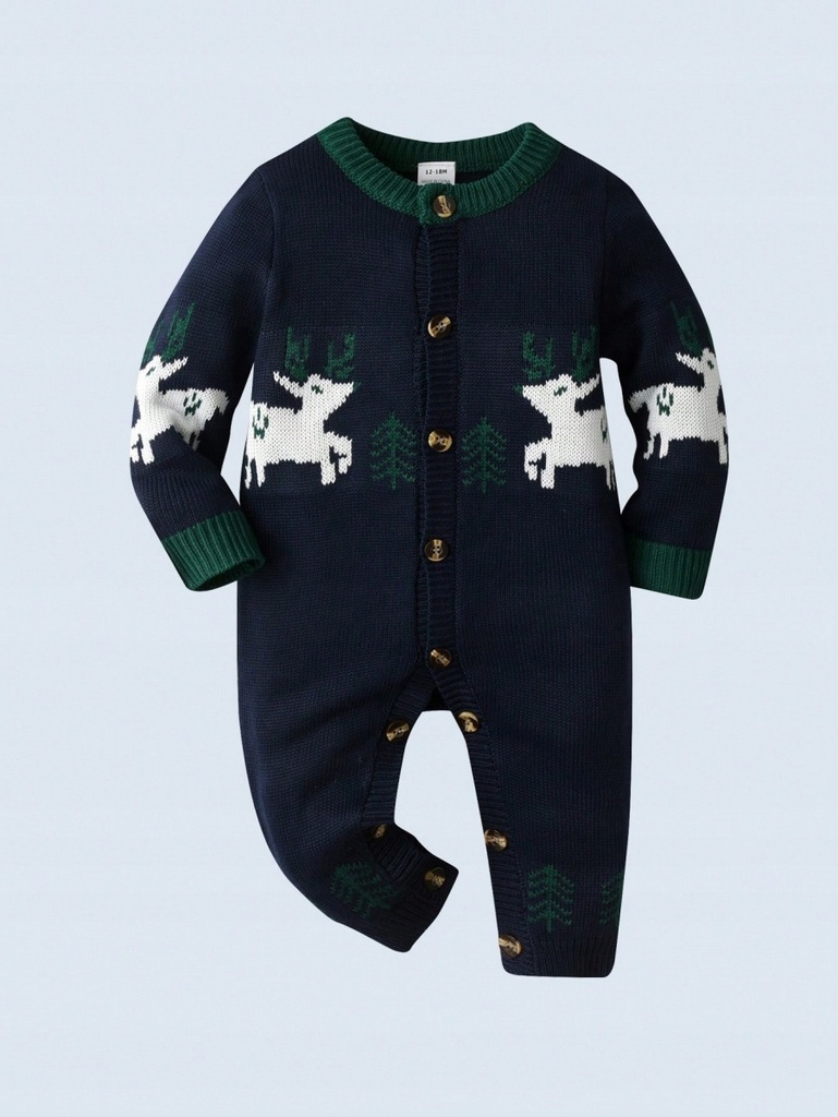 SHEIN KOMBINEZON CHŁOPIĘCY DZIANINOWY WE WZÓR ŚWIĄTECZNY 74