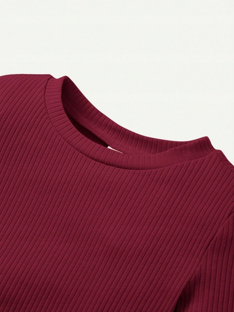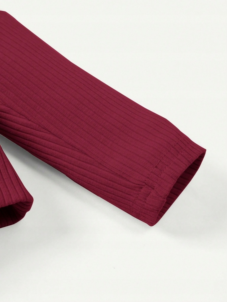 SHEIN KOMPLET DZIECIĘCY DZIANINA BORDOWY BLUZKA I SPODNIE ROZM 80