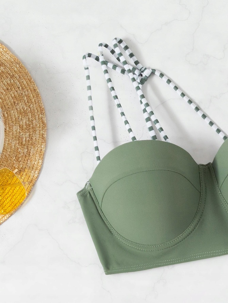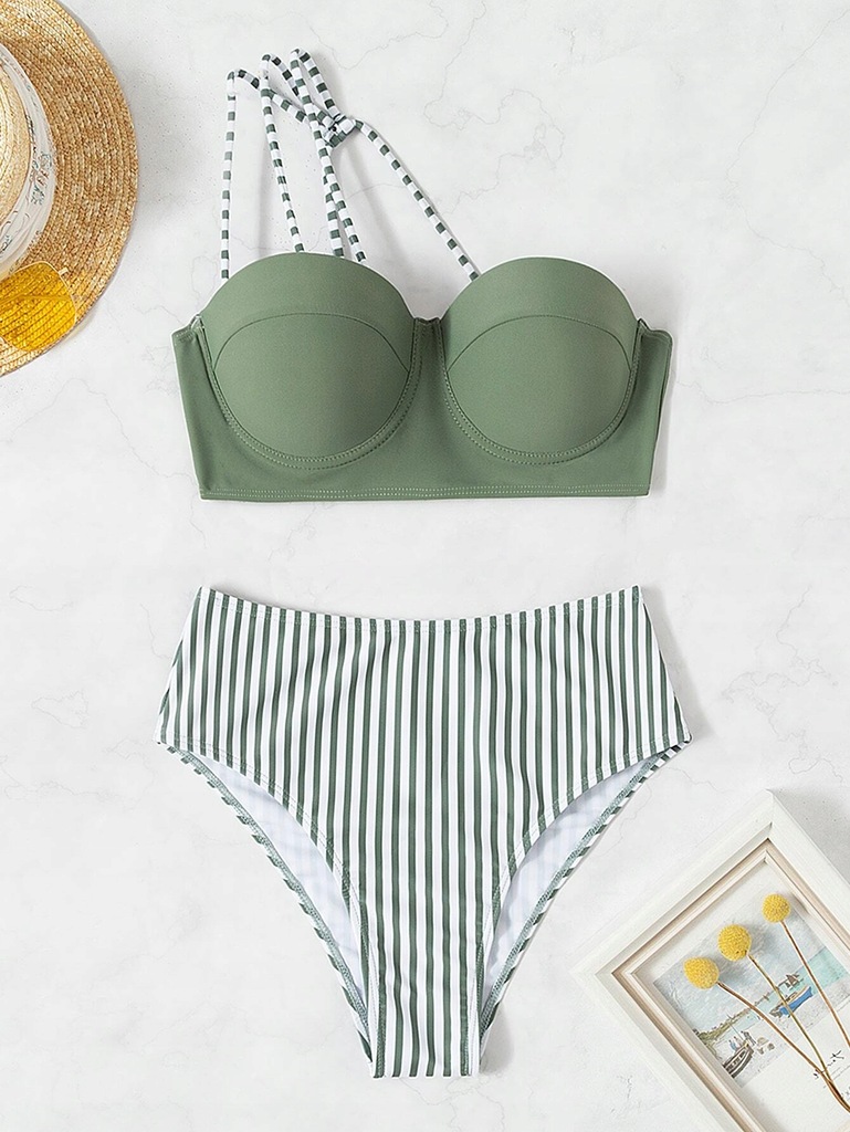 Kolor: Wielokolorowe Styl: Seksowne Rodzaj Wzoru: W Paski Szczegóły: Asymetryczny Rodzaj wykończenia dołu: Wysoki stan Rodzaj Biustonosza: Push-up Dekolt: Asymetryczny dekolt Tkanina: Mocno rozciągliwe, Tkanina Instrukcja dotycząca pielęgnacji: Prać w pralce, nie czyścić chemicznie Ochraniacz na klatkę piersiową: Niezdejmowane Poduszki Naramienne Dół Bikini Skład: 82% Poliester,18% Elastan Topy bikini Skład: 80% Poliamid,20% Elastan Dół Bikini Body: Podszewk