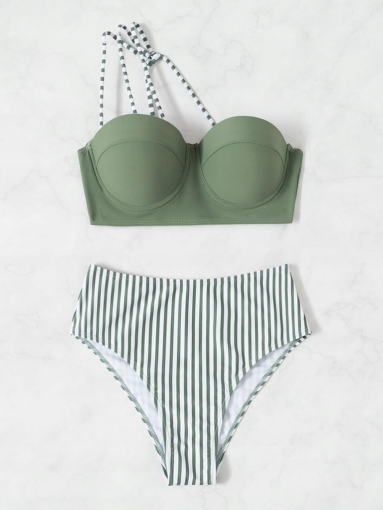 Shein kostium kąpielowy w paski na jedno ramię push up XL