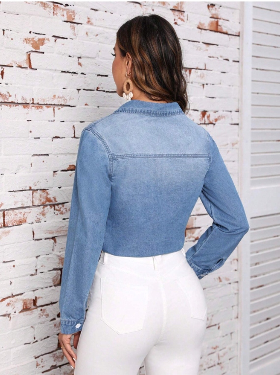 SHEIN KOSZULA DAMSKA JEANSOWA DŁUGI RĘKAW KORALIKI L