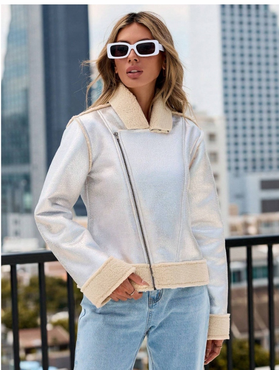 SHEIN KURTKA DAMSKA SREBNA Z PLUSZEM RAMONESKA L