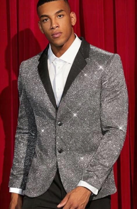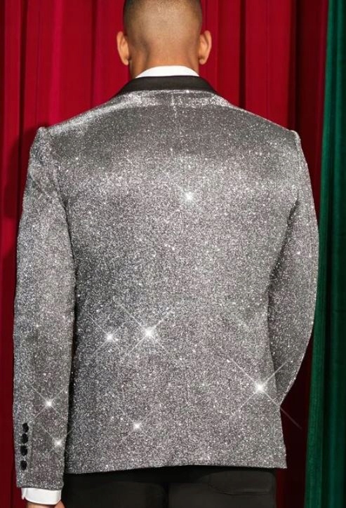 SHEIN MARYNARKA MĘSKA SREBRNA BŁYSZCZĄCA