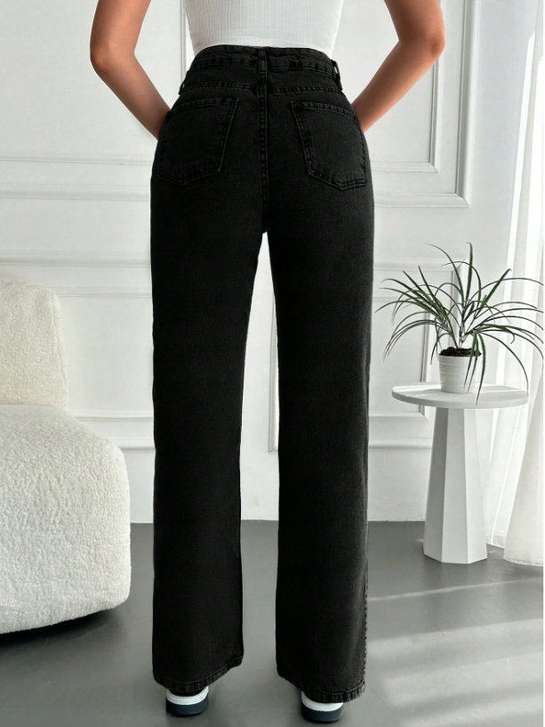 SHEIN SPODNIE DAMSKIE CZARNE GŁADKIE DENIM Z ROZCIĘCIEM 40