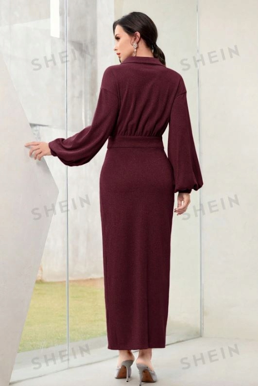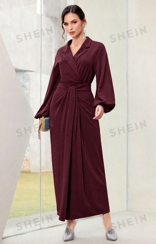 SHEIN SUKIENKA MAXI BORDOWA MARYNARKOWA PROSTA BROKATOWA L