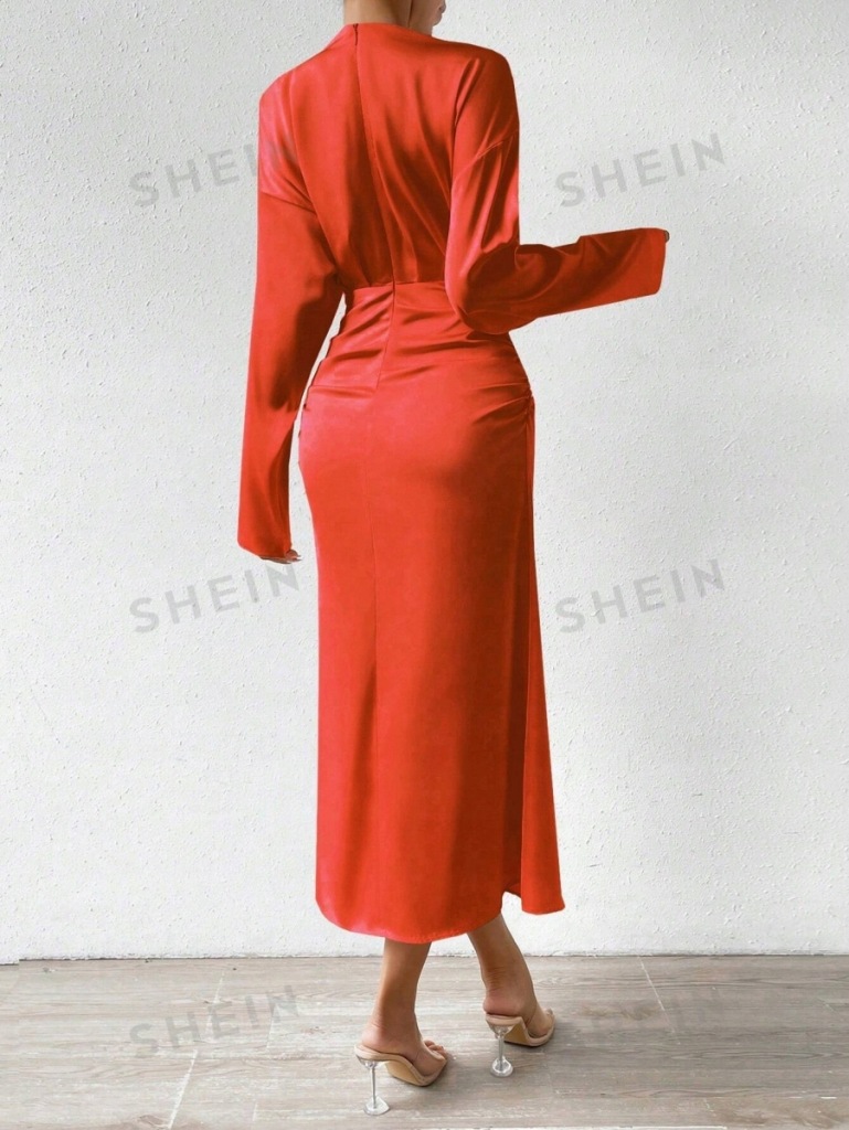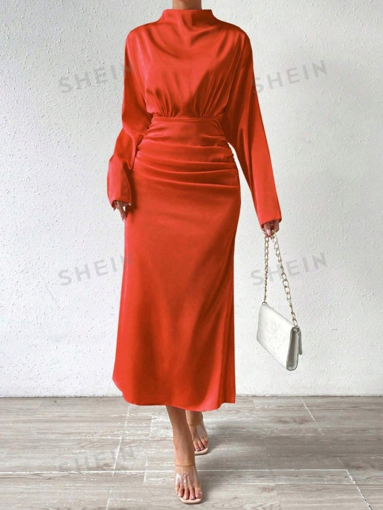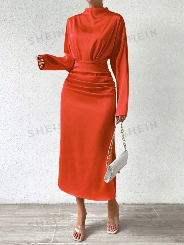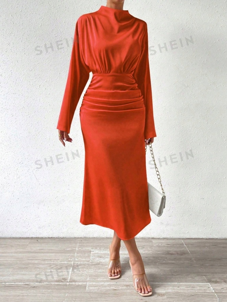 SHEIN SUKIENKA MIDI Z MARSZCZENIAMI POMARAŃCZOWA M