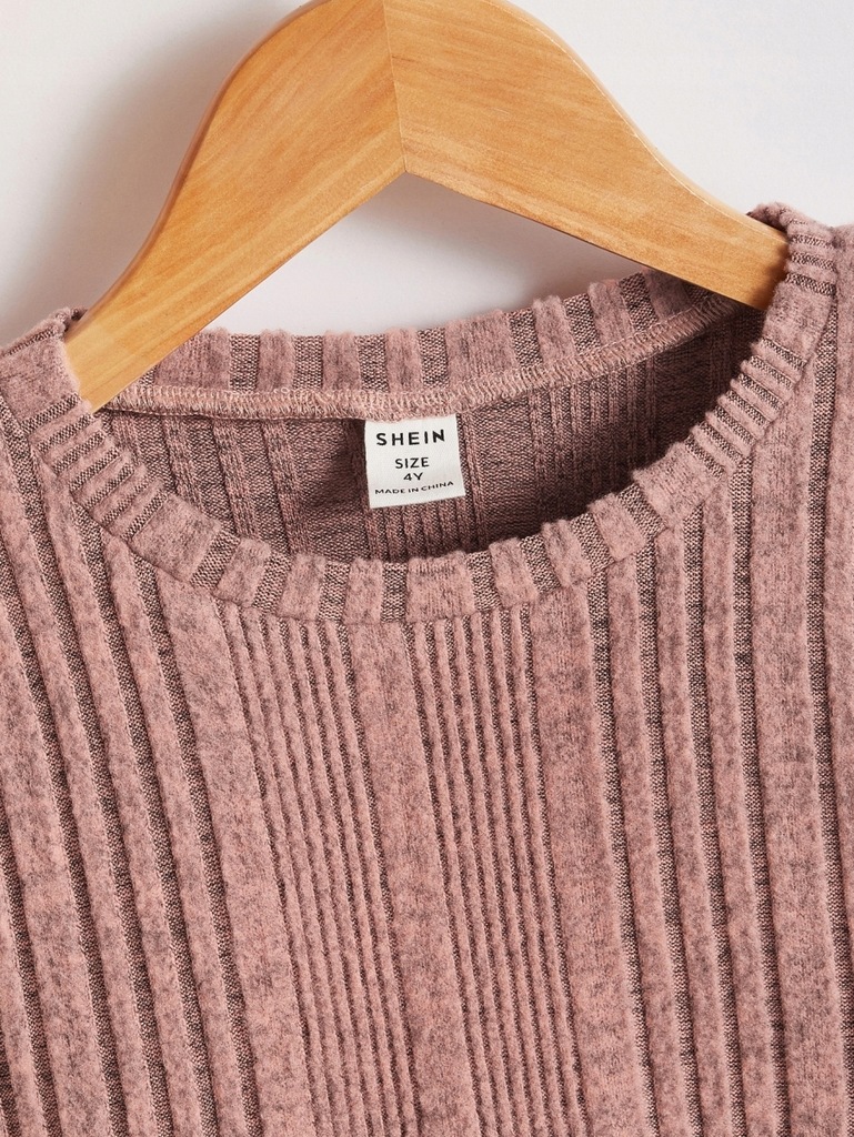 SHEIN SWETER DZIECIĘCY PRĄŻKOWANY RÓŻOWY 104-110CM