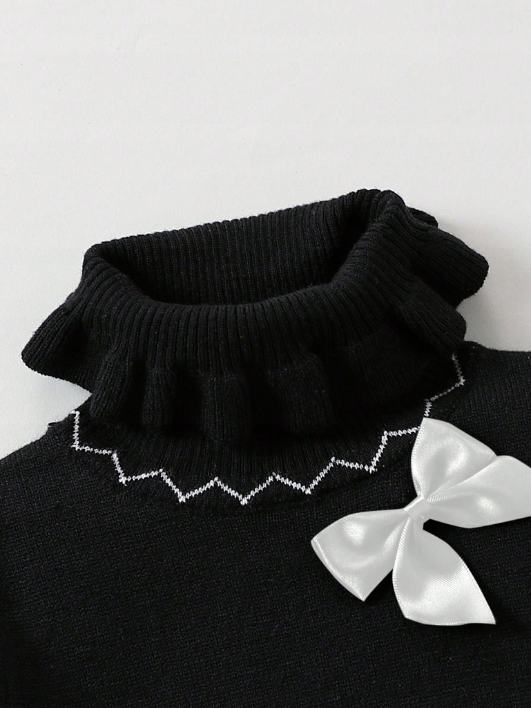 SHEIN SWETEREK DZIECIĘCY CZARNY DŁUGI RĘKAW KOKARDKA ROZ 80