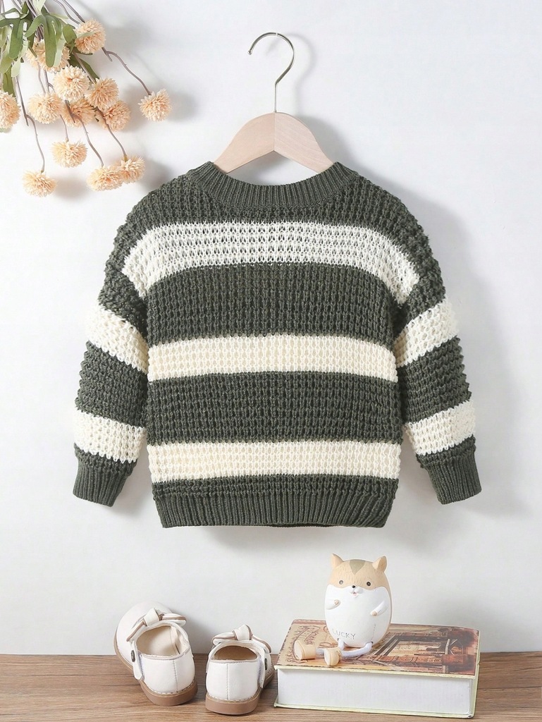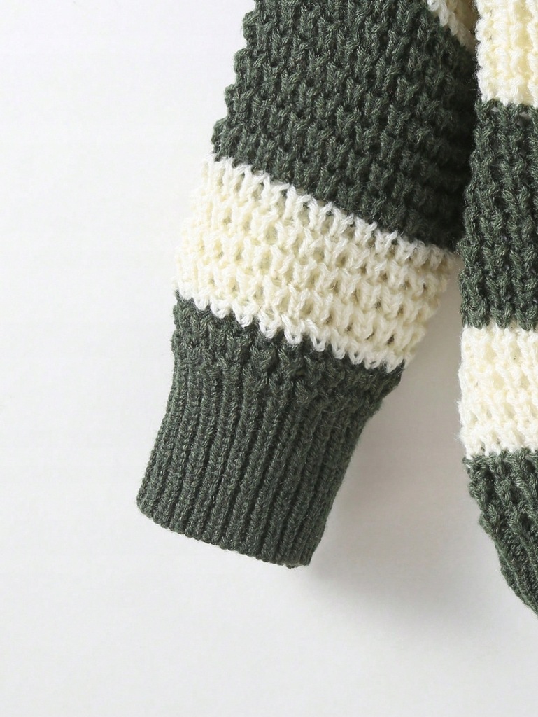 SHEIN SWETEREK DZIEWCZĘCY W PASKI ZIELONO-BEŻOWY 18-24M
