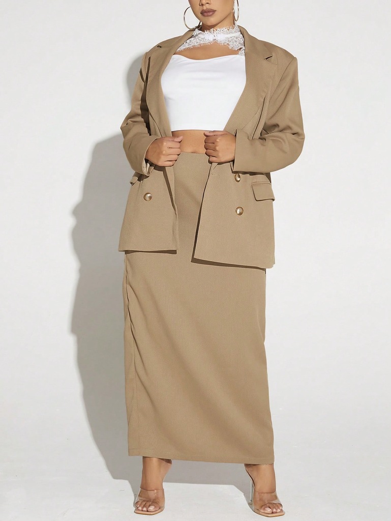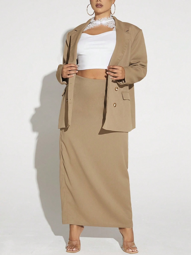SHEIN SXY Plus Dwurzędowa marynarka i spódnica XXL
