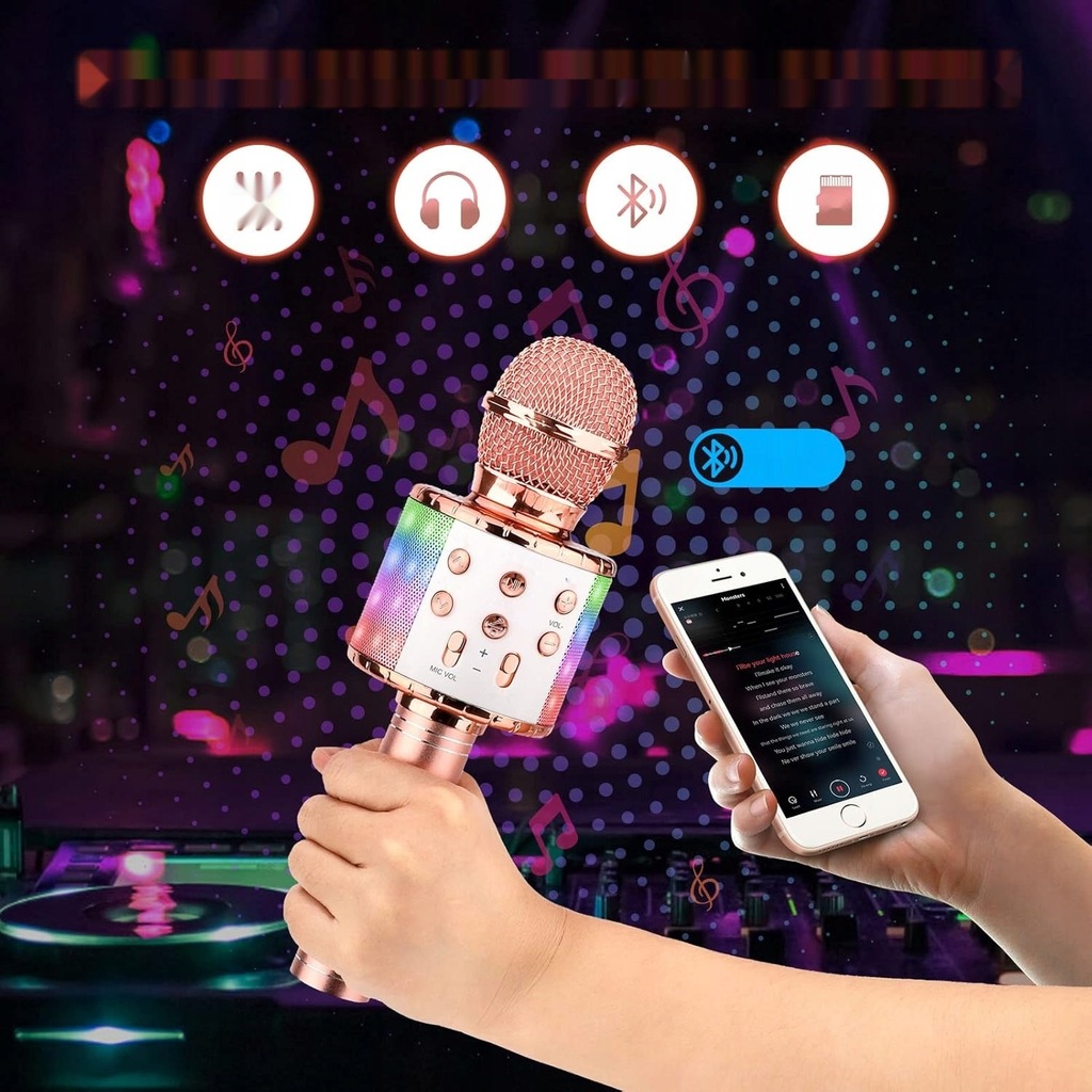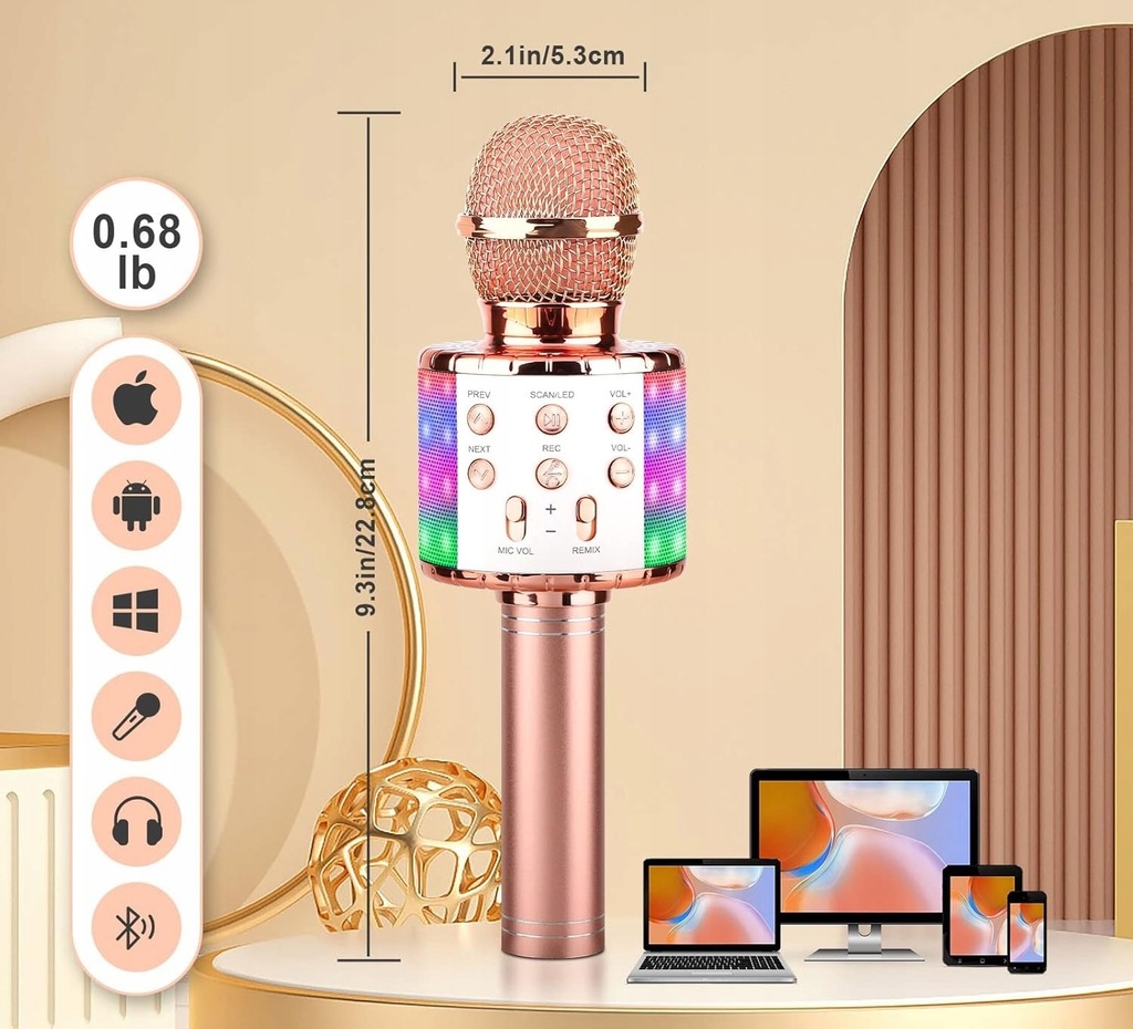 ShinePick Karaoke Bezprzewodowy Mikrofon Karaoke Bluetooth Przenośny Mikrofon dla Dzieci/Dorosłych Kompatybilny z Android IOS PC Smartphone